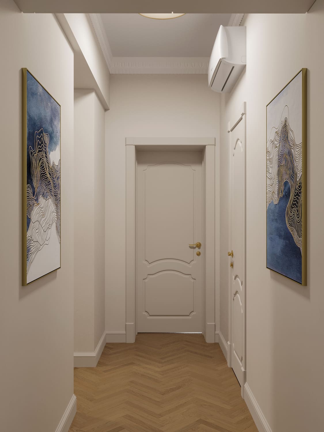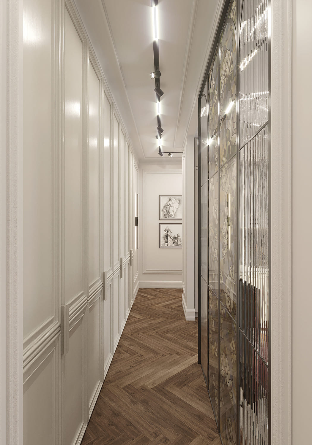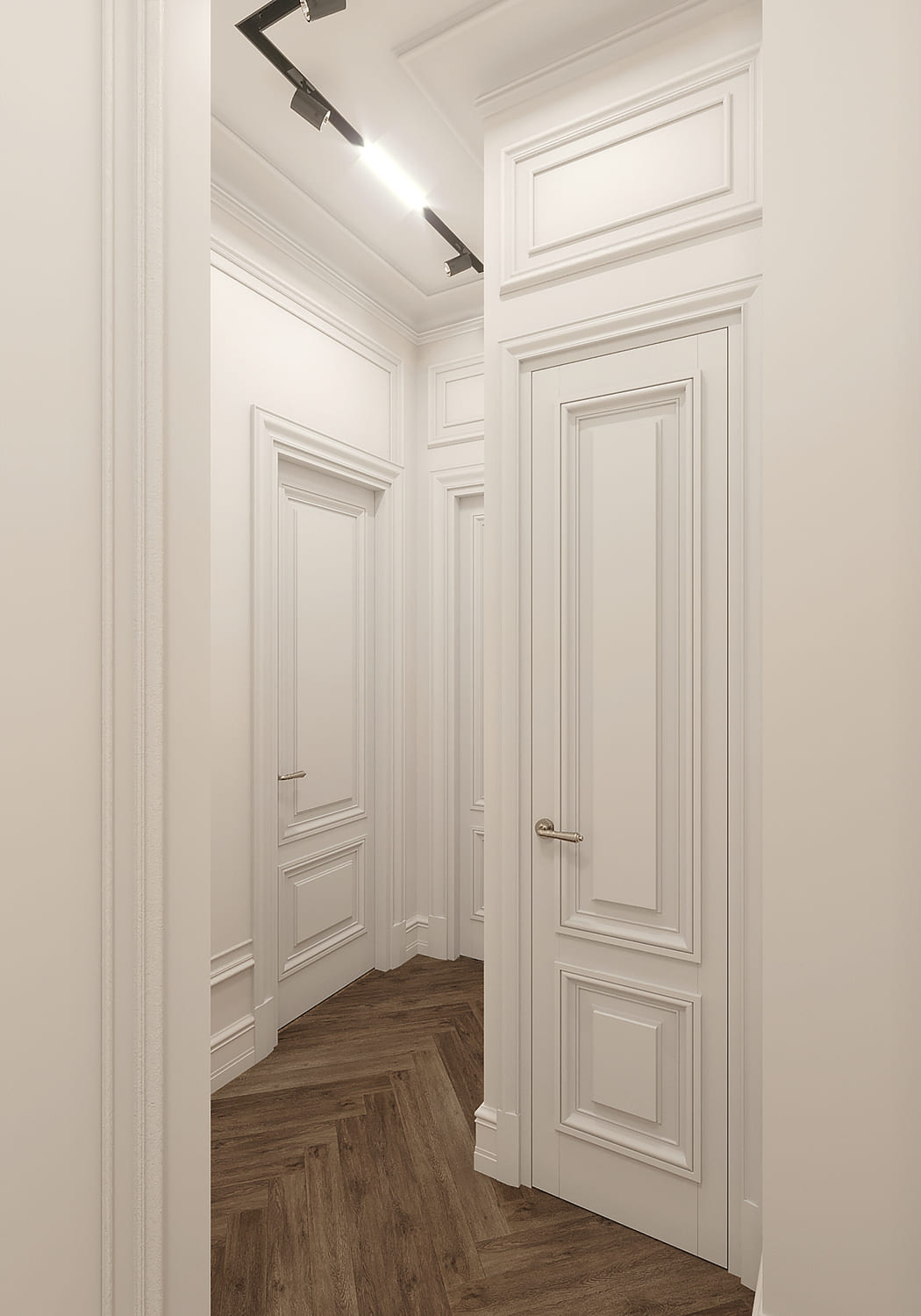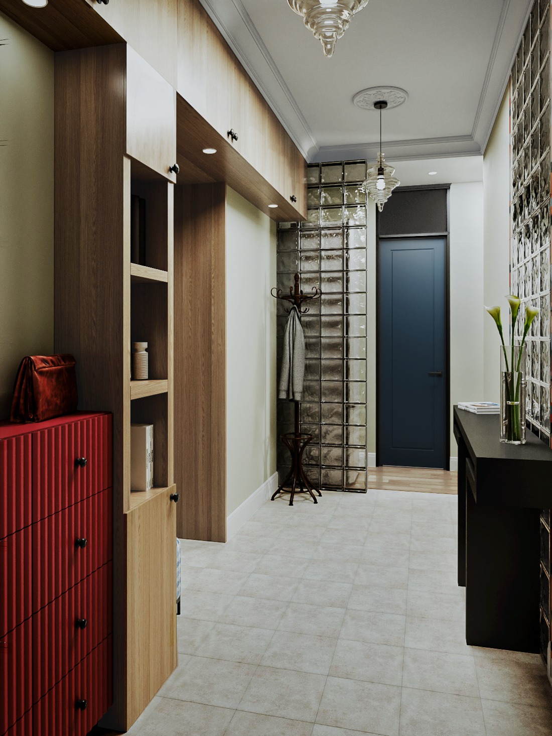 Коридор — не просто проход, а визитная карточка сталинской квартиры. Узкие метры и высокие потолки создают уникальный дизайн-вызов: нужно совместить практичность хранения с сохранением исторического характера.