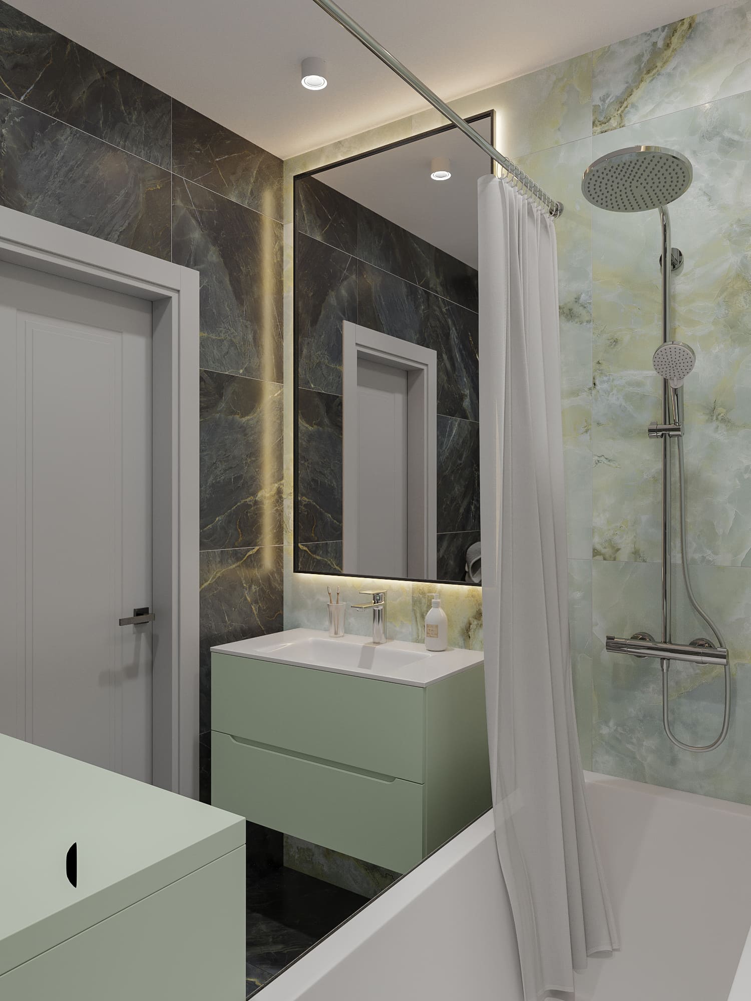 Из-за особенностей планировки некоторые уголки остаются без естественного света. Важно продумать сценарии освещения: точечные светильники, бра, подсветку в шкафах и зеркалах.