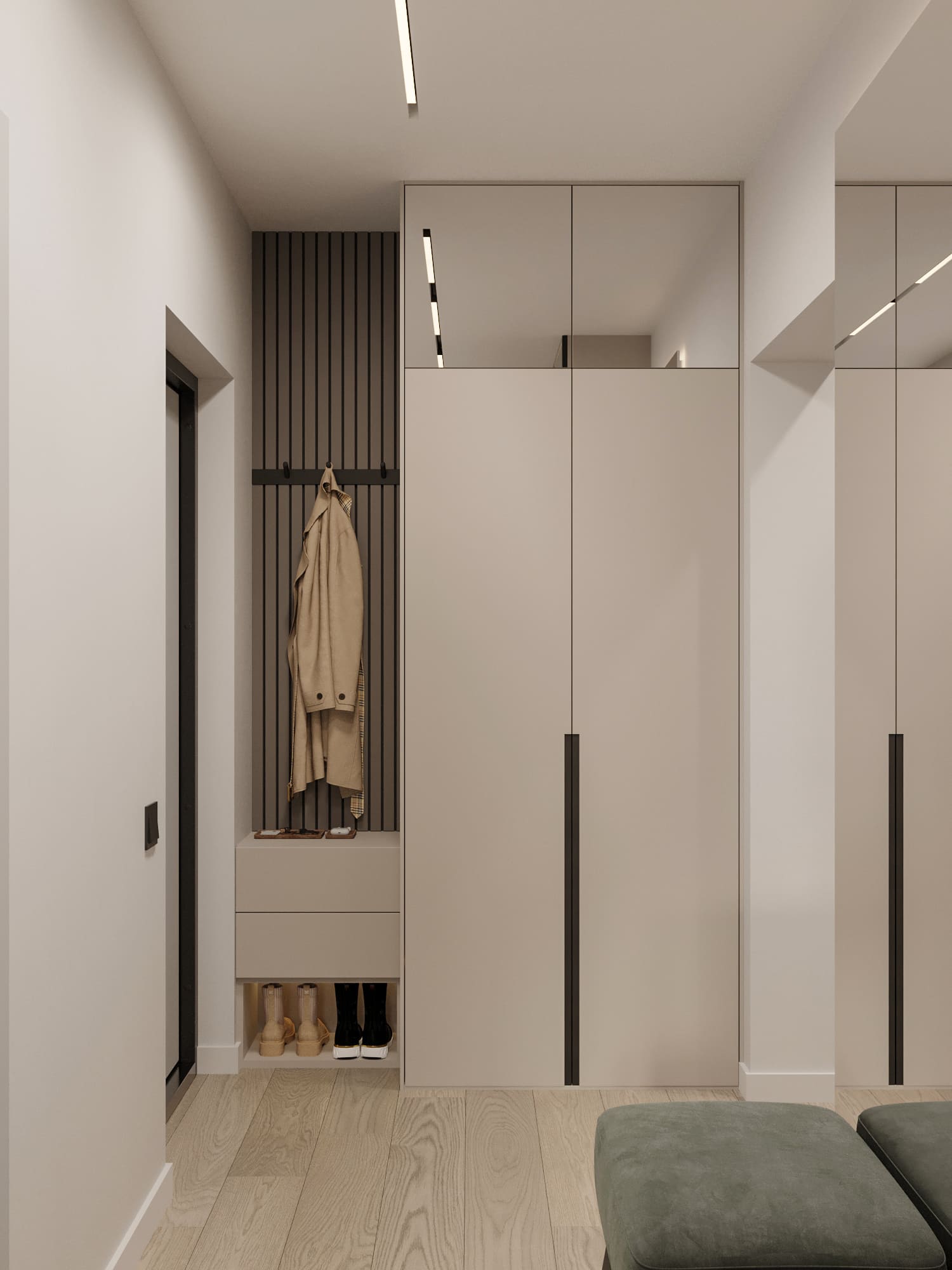 🔹 Ниши в коридоре и прихожей — идеальное место для встроенных шкафов глубиной 40–60 см