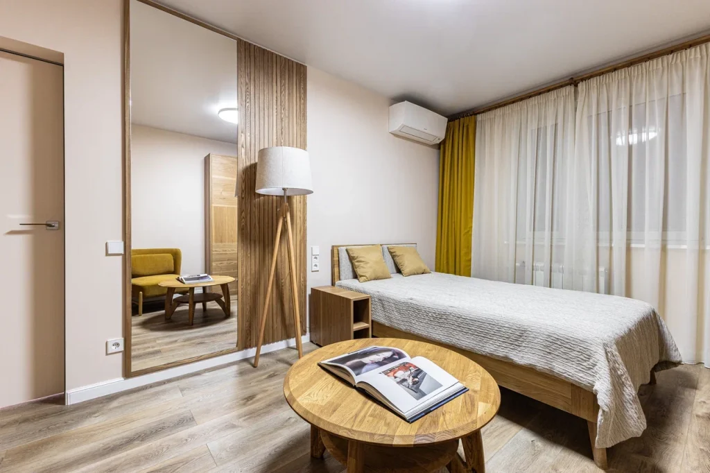 ◾️ Зеркала: большая зеркальная поверхность или зеркальные фасады шкафа создают эффект двойного пространства.