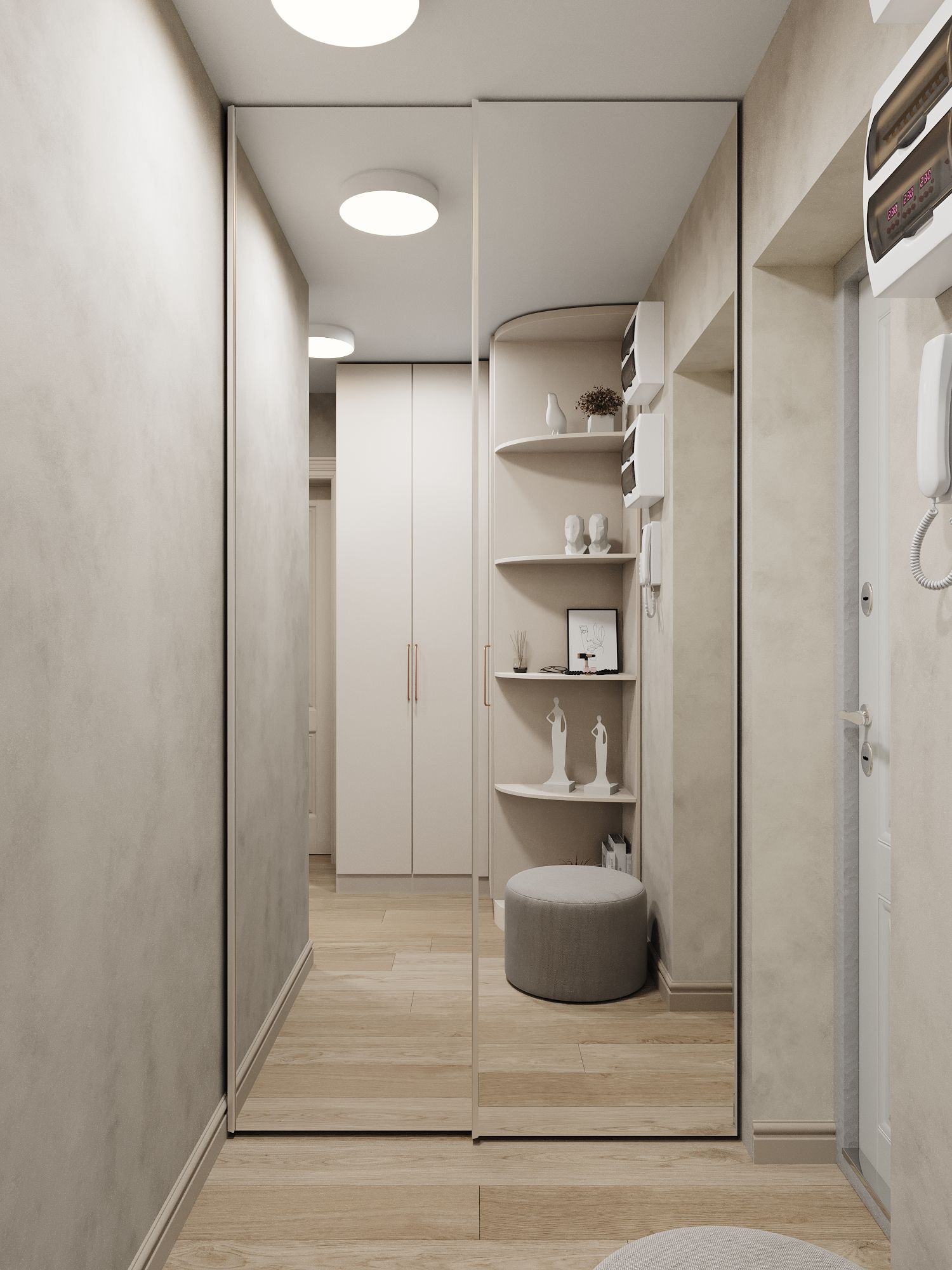 — Коридор-пенал отдайте под глубокий шкаф — это выровняет геометрию;