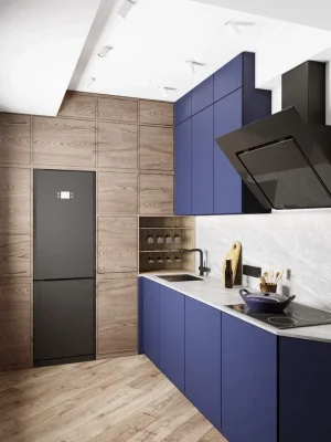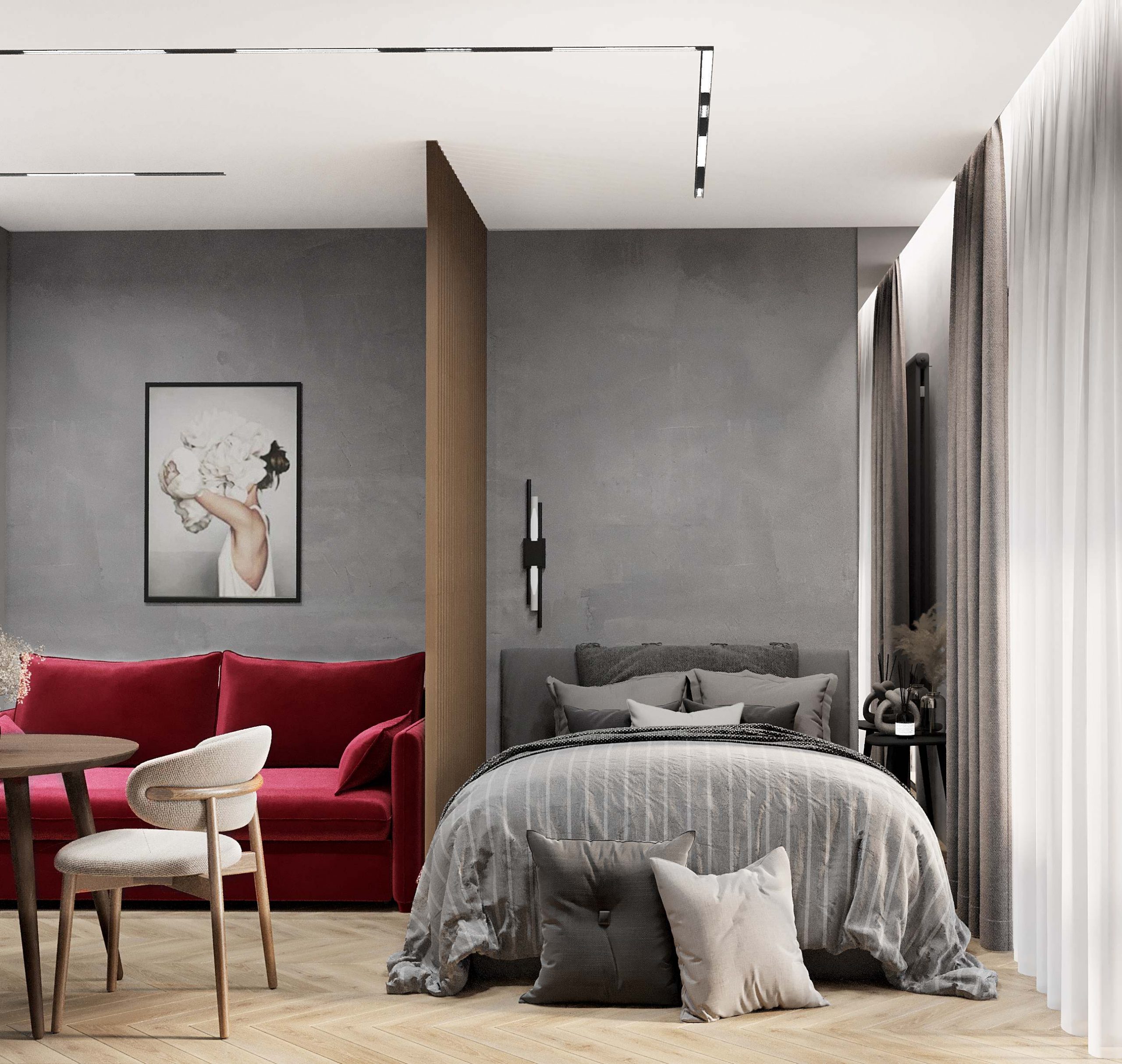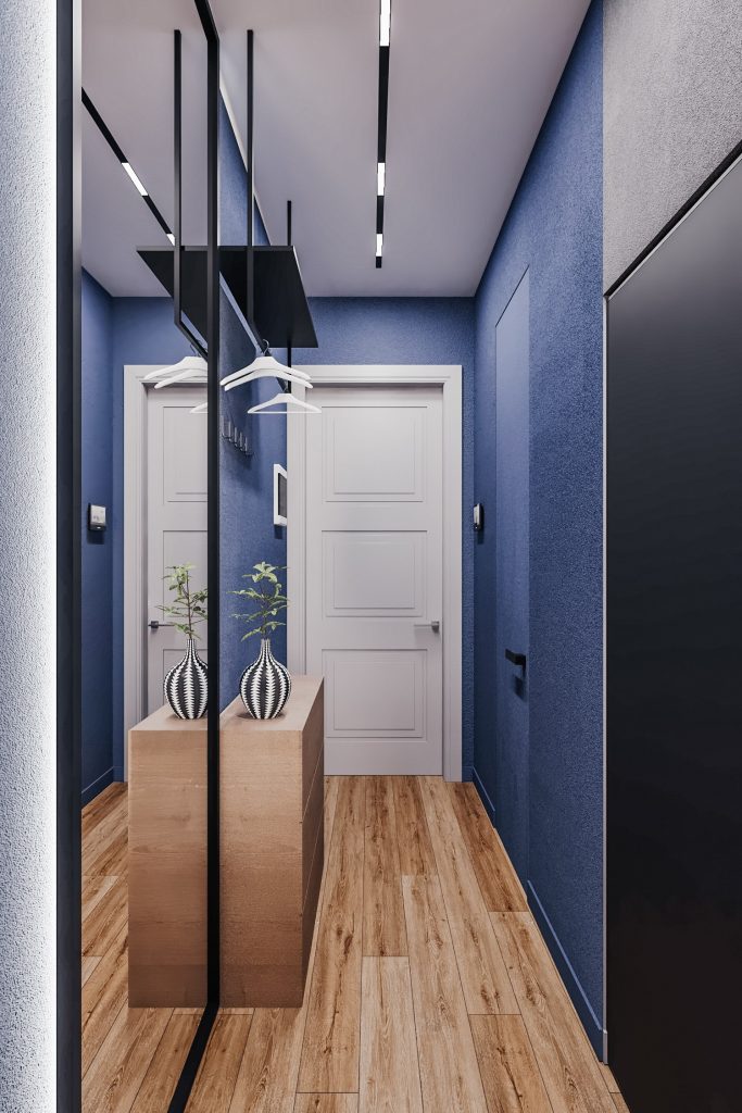 - Фото дизайна студии 22 кв в темных тонах с яркими акцентами в ЖК Павелецкая Сити