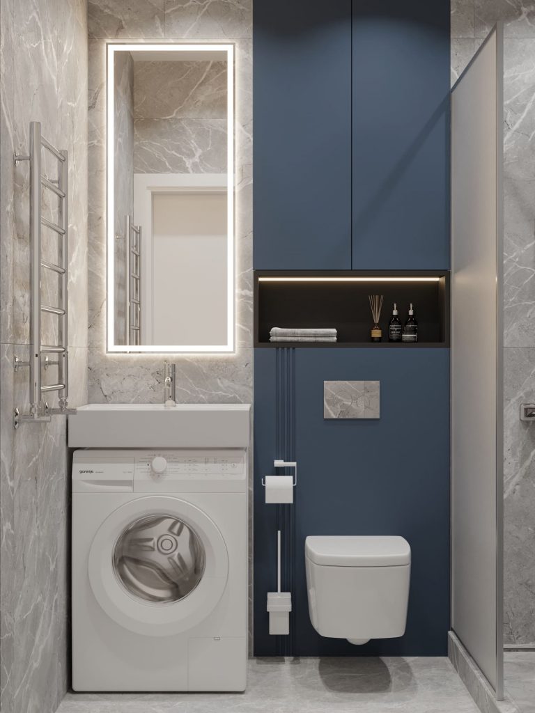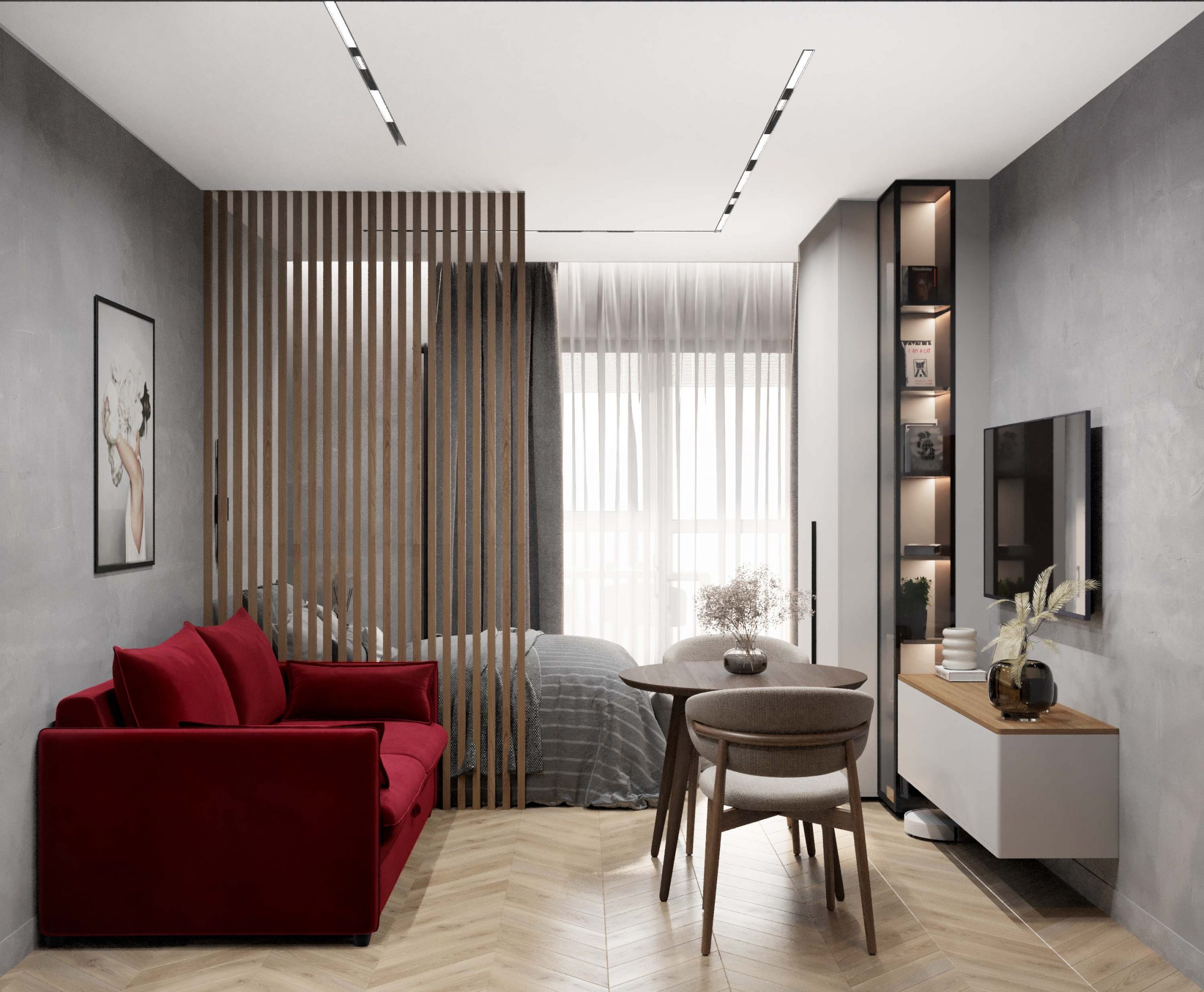 - Фото дизайна современной студии 26 кв с яркими акцентами в ЖК Авилон Митино