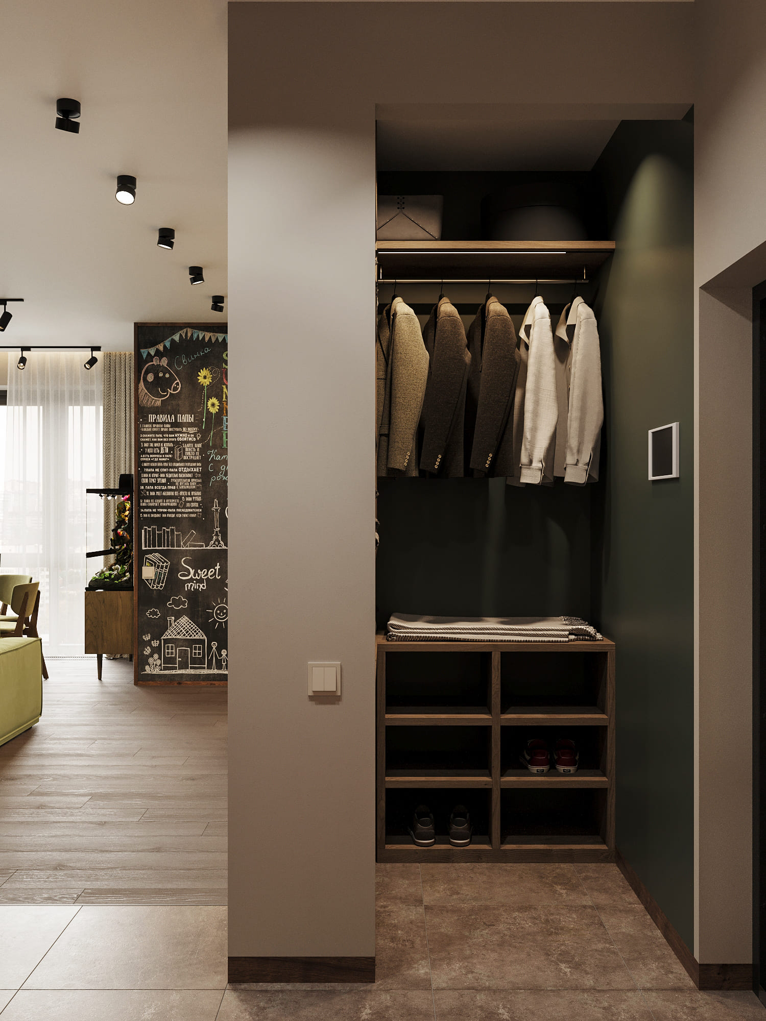 ✔️ Глубина вместо ширины. Достаточно глубины 40-50 см для хранения одежды на плечиках. Оставшееся пространство коридора останется комфортным для прохода.