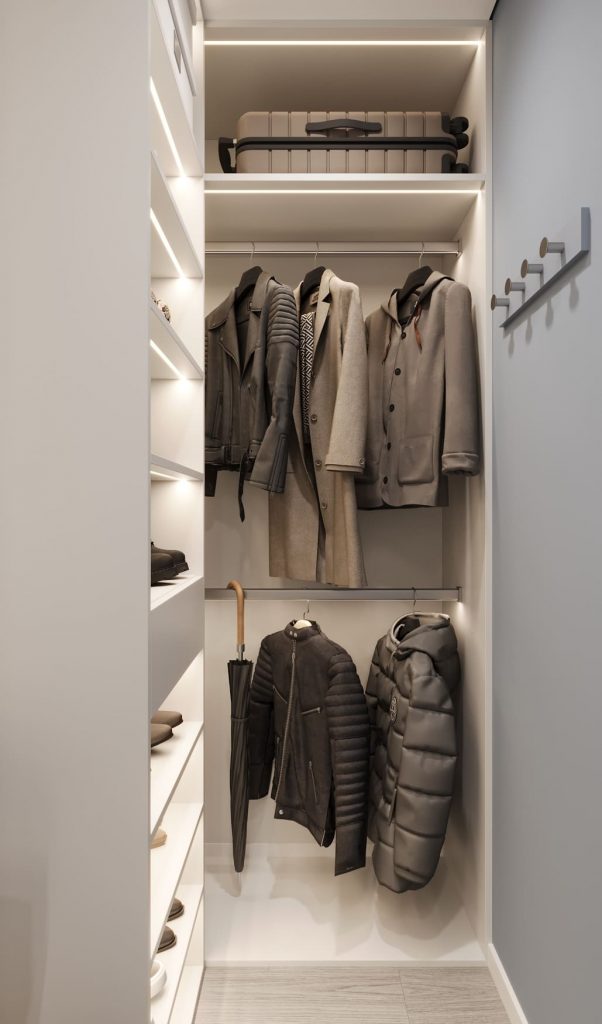 Продуманное расположение сделает использование гардеробной максимально комфортным в ежедневной жизни.
