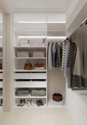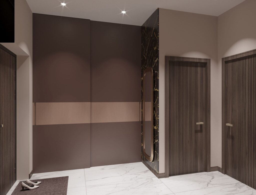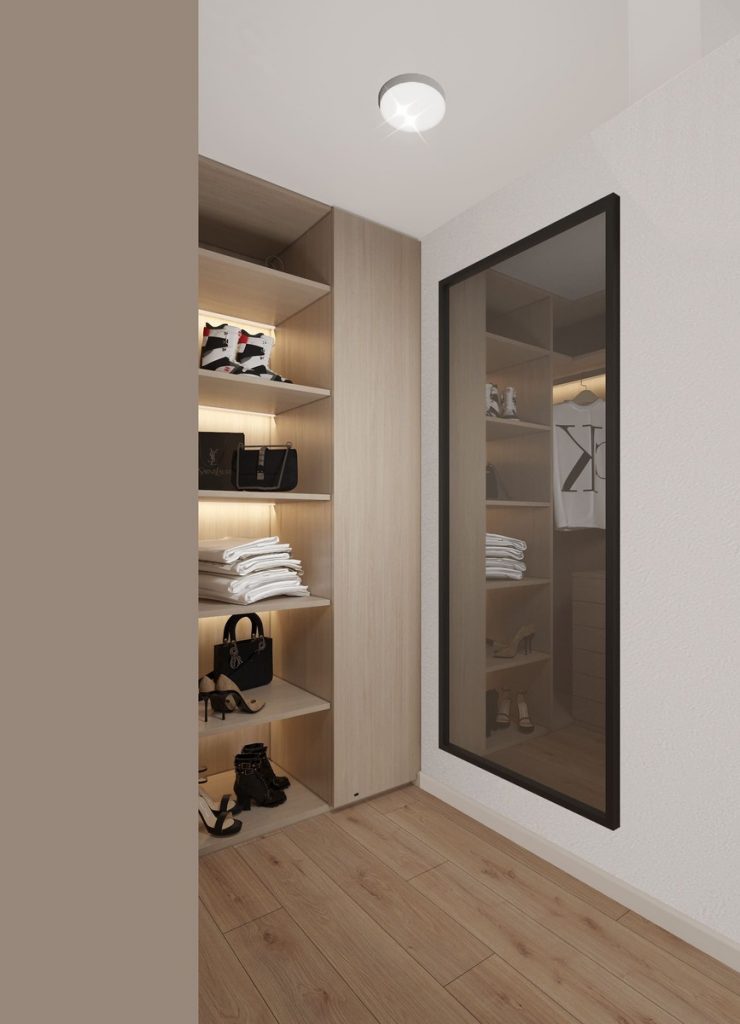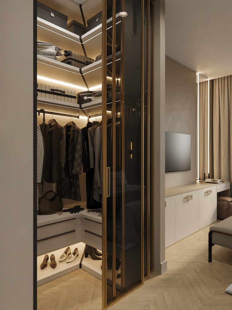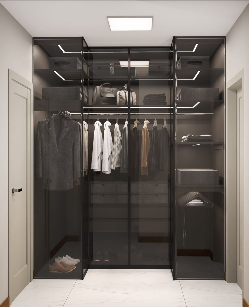 Отличное решение для компактных квартир, поскольку угловая гардеробная занимает минимальное пространство, при этом предоставляя достаточные возможности для хранения вещей. Ее можно разместить в любом углу комнаты, что позволяет максимально использовать свободные уголки и избегать пустых или неудобных участков.