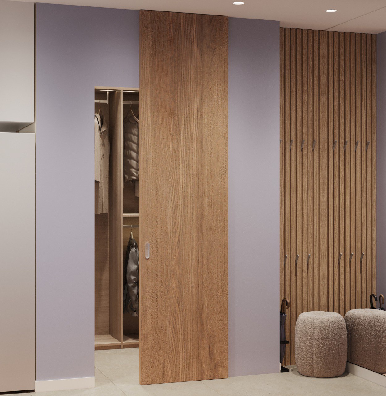 Хватит использовать нишу как бесполезный чулан! Это готовая архитектурная возможность, хоть и малого размера. Оборудуйте ее под гардеробную — вы не только вернете квадратные метры в оборот, но и получите продуманную систему хранения без громоздкой мебели.