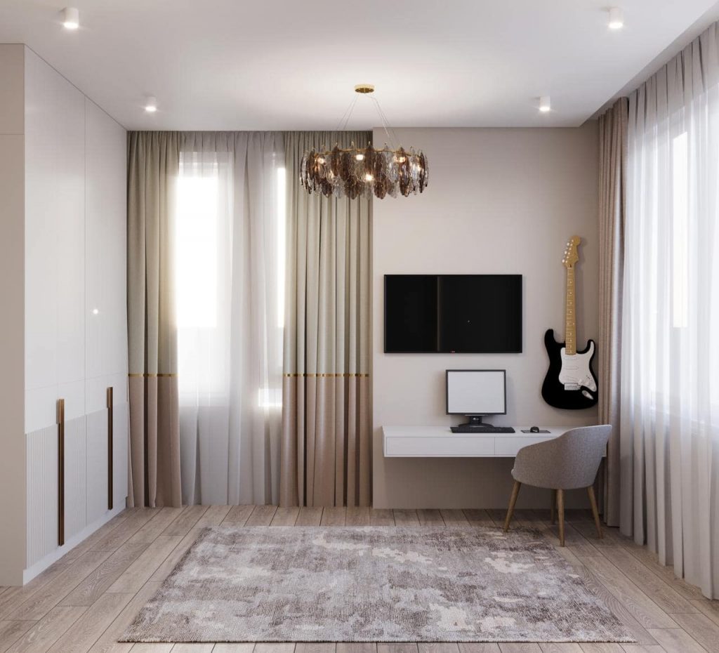 Декоративные элементы, такие как коврики, картины и растения, создадут уют, но не должны отвлекать, особенно в рабочей зоне.