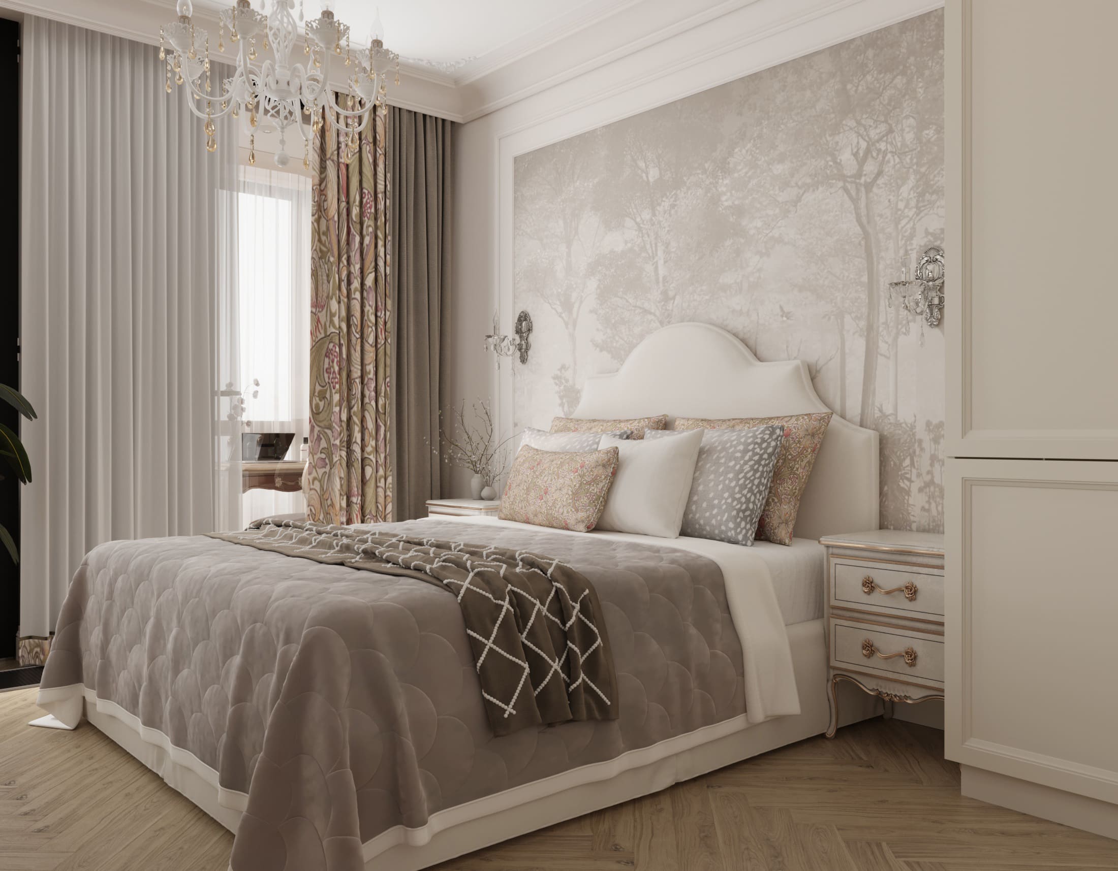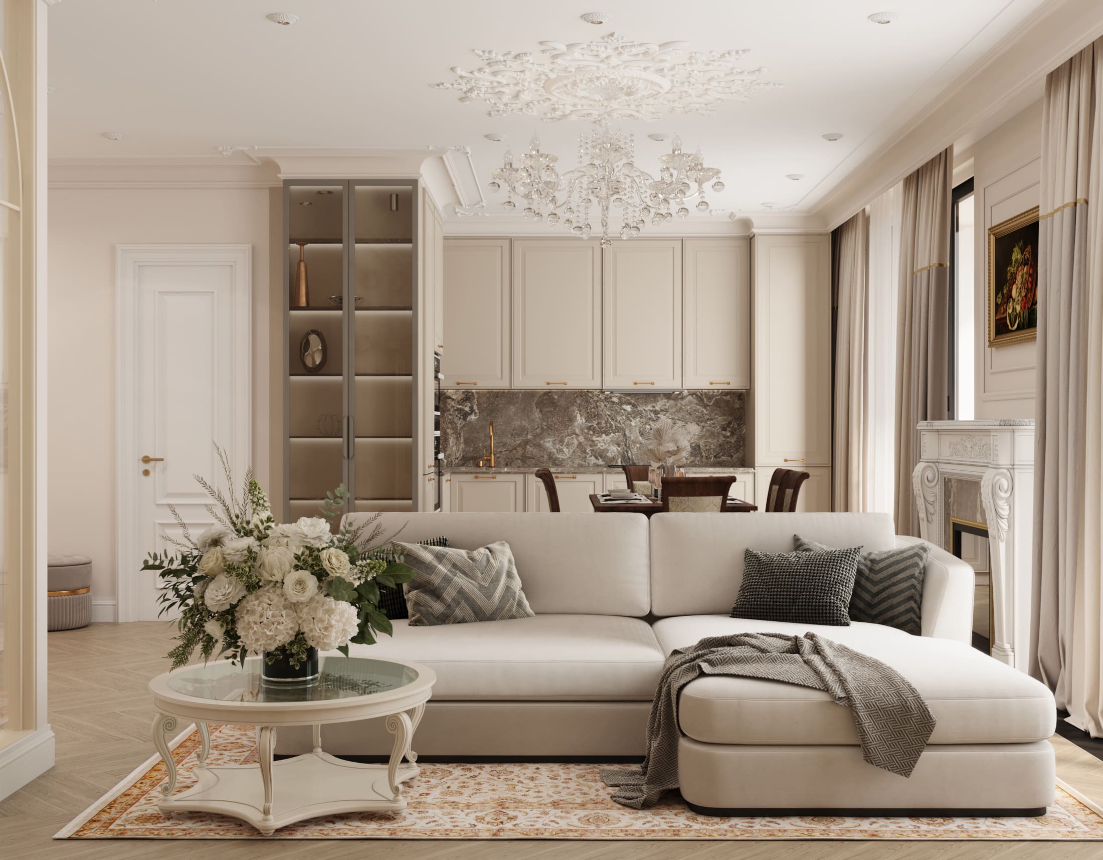 • Светлые нейтральные тона — кремовый, бежевый, молочный, слоновая кость создают уют и визуально расширяют пространство;
