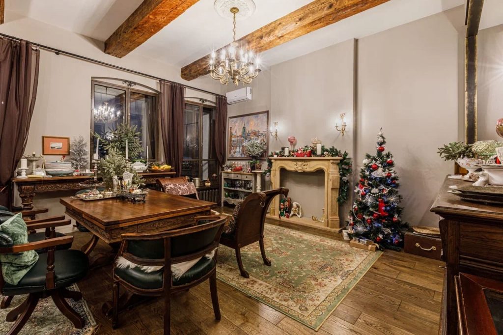 • Глубокие тёмные цвета — бордовый, изумрудный, тёмно-синий и шоколадный используются для акцентов, придавая интерьеру роскошь;