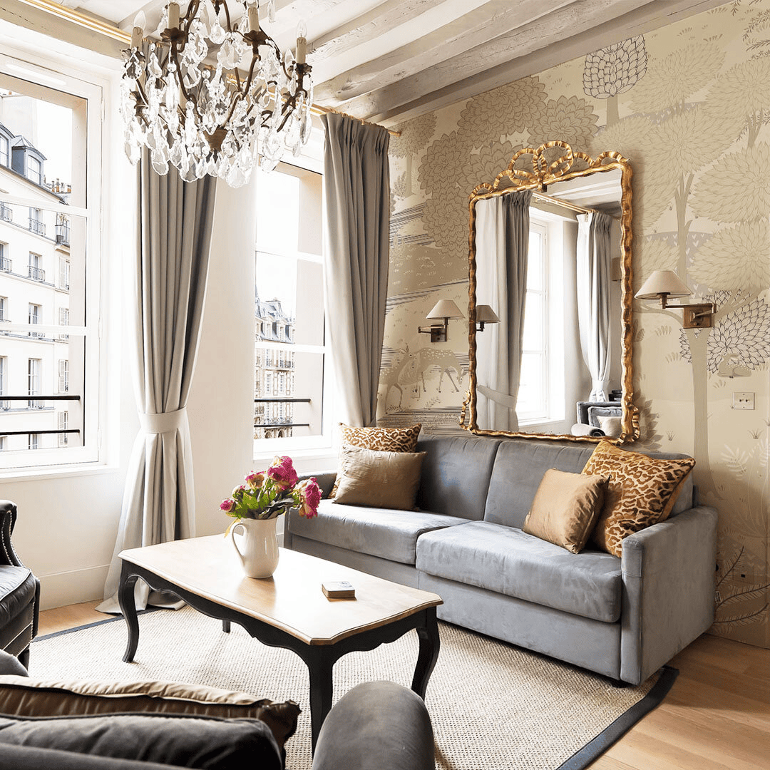 Квартиры, оформленные в этом стиле, легко узнать по элегантному сочетанию светлых оттенков, винтажной мебели, изящных светильников и акцентных декоративных элементов: зеркал в позолоченных рамах, художественной лепнины, текстиля с легким налетом старины. Это интерьер, в котором у каждой вещи есть своя история, но при этом пространство остается функциональным и уютным.