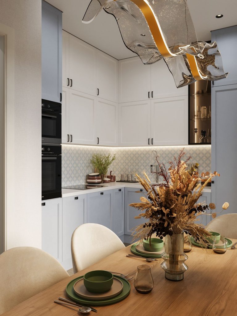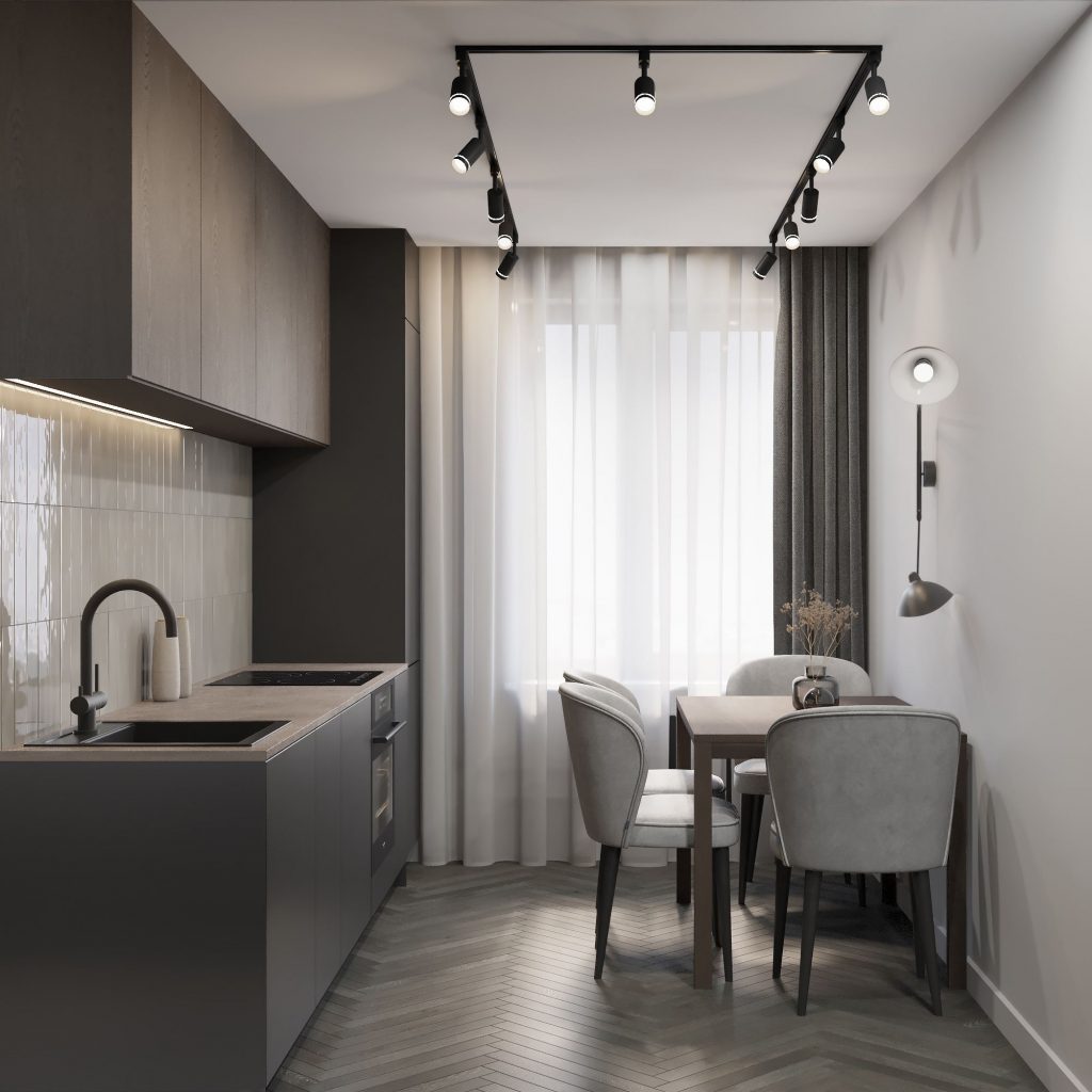Для семьи с детьми потребуется продуманная система хранения и удобный обеденный стол. Если же вы живёте один и редко готовите, можно обойтись компактной барной стойкой и минимальным набором техники.