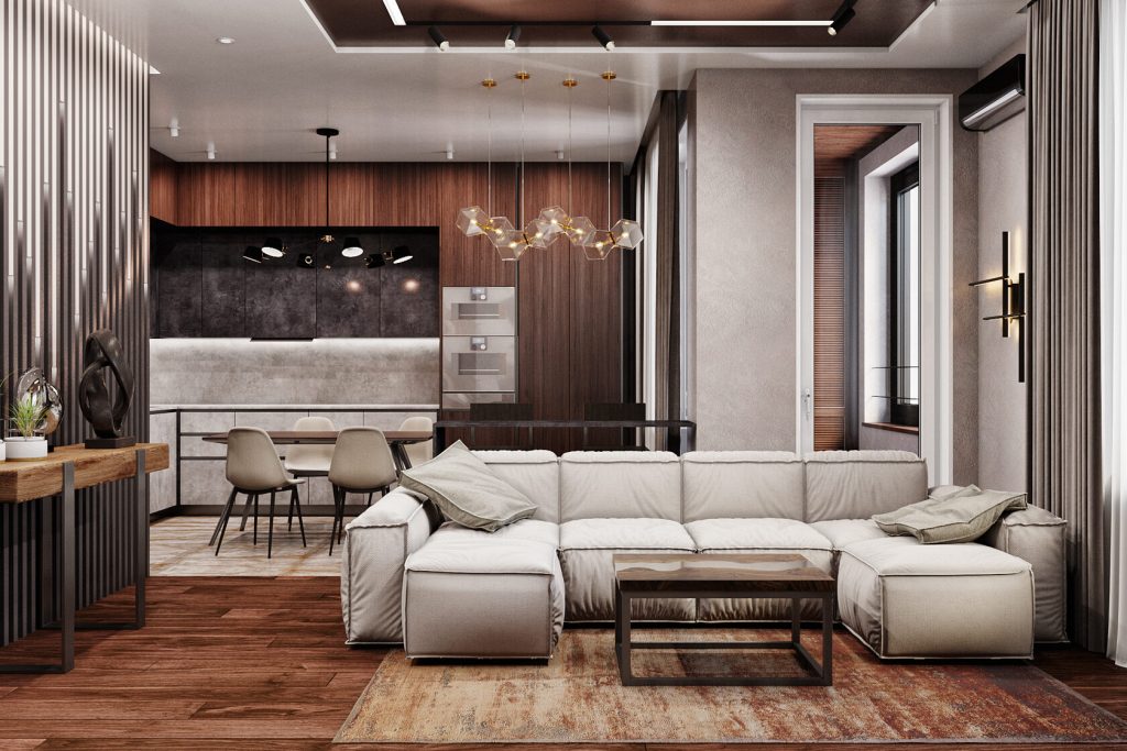 Сначала давайте разберемся с общими характеристиками стиля лофт. Это стиль, который пришел к нам из промышленных зданий Нью-Йорка и Чикаго. Он предполагает использование керамогранита, железа, 3D-панелей и натуральной древесины.