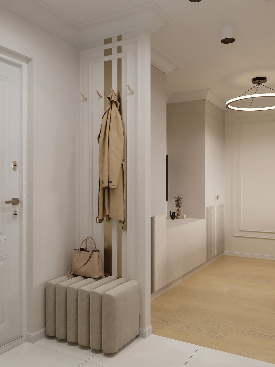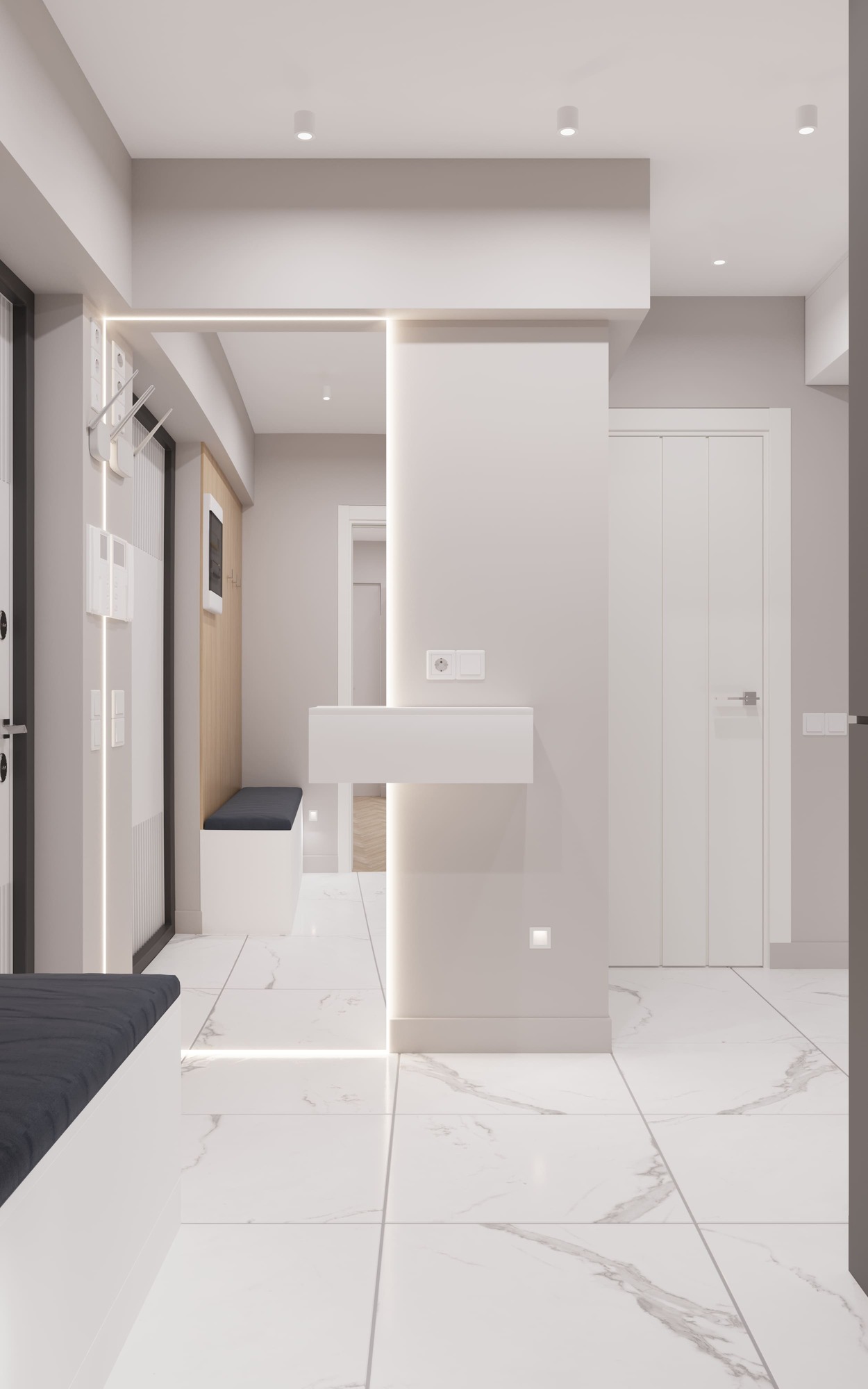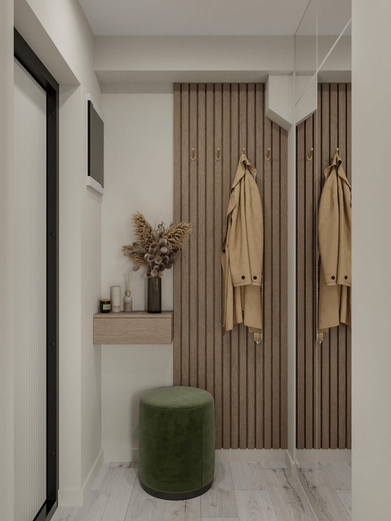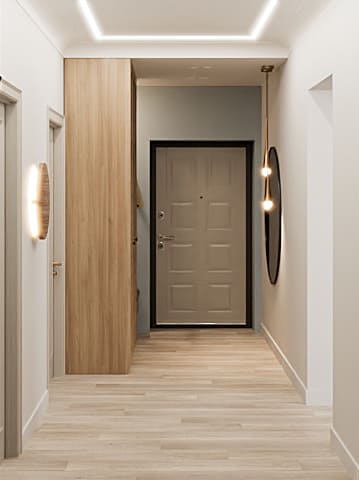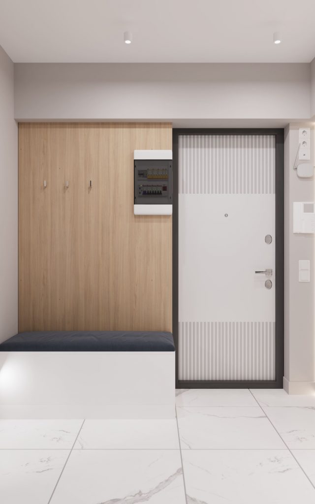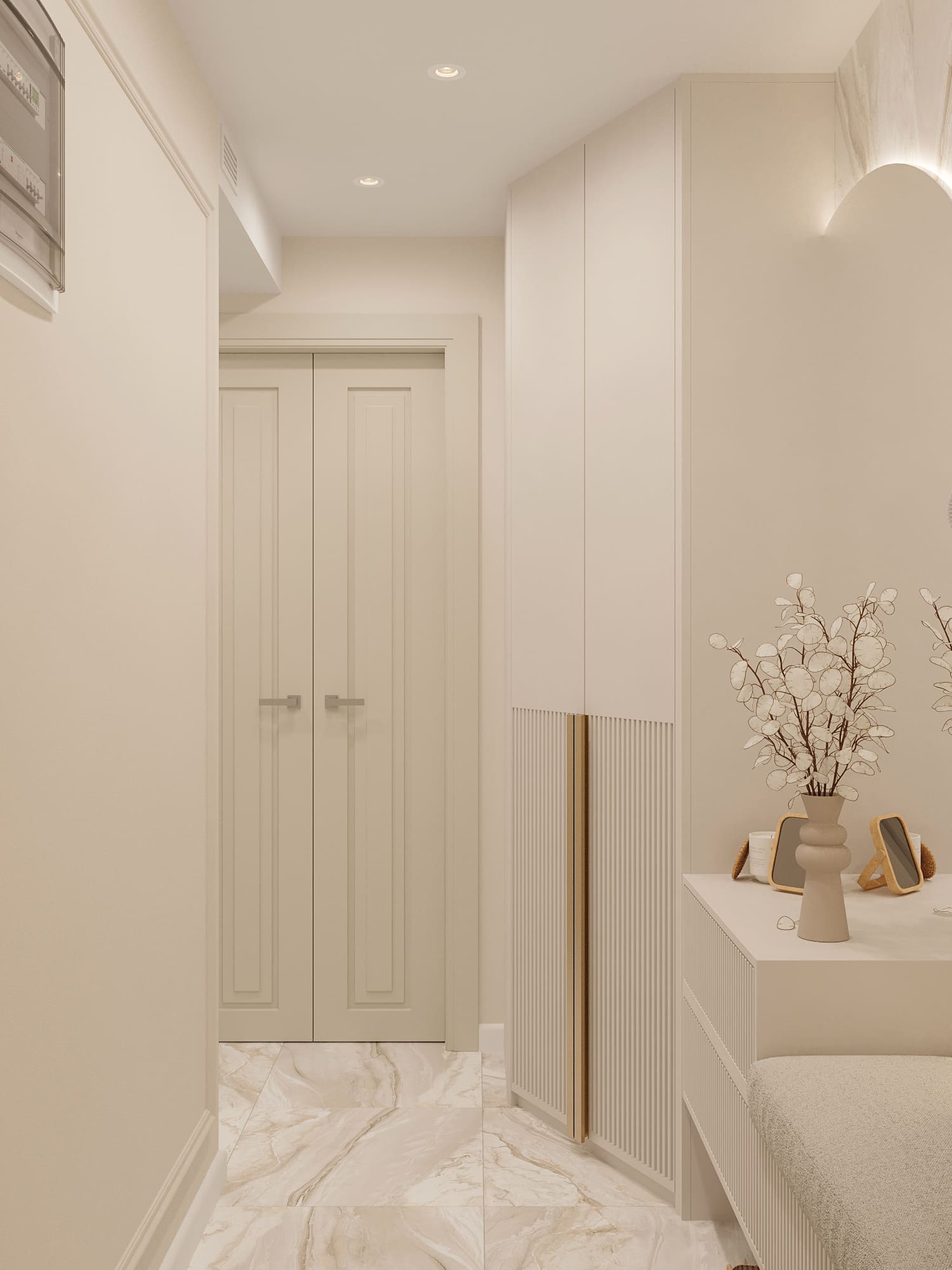 Специалисты Domeo разработали продуманные дизайны для маленькой прихожей, создав гармоничный интерьер с максимальной функциональностью. Каждый элемент мебели в этом проекте был спроектирован специально для компактного пространства.