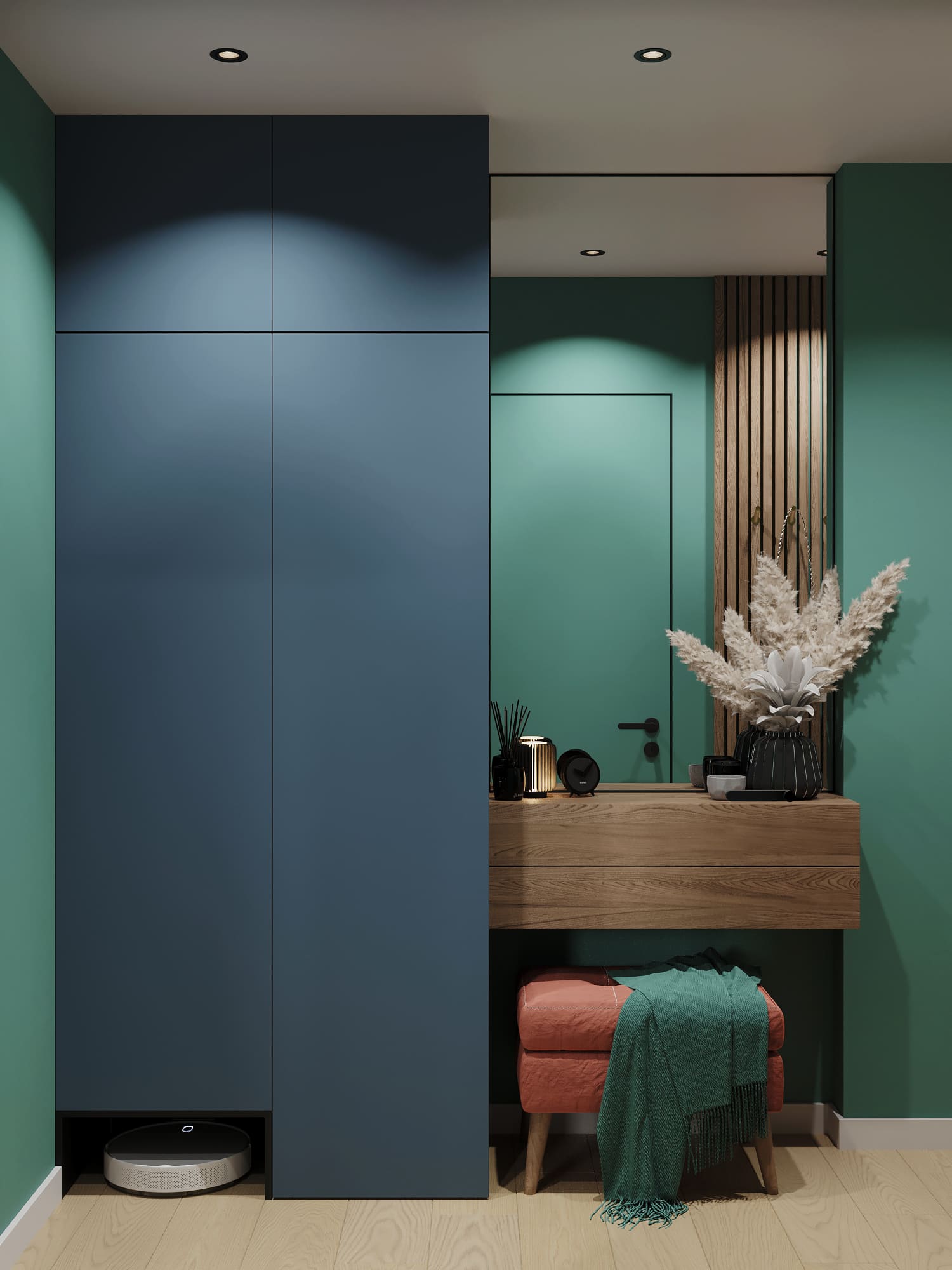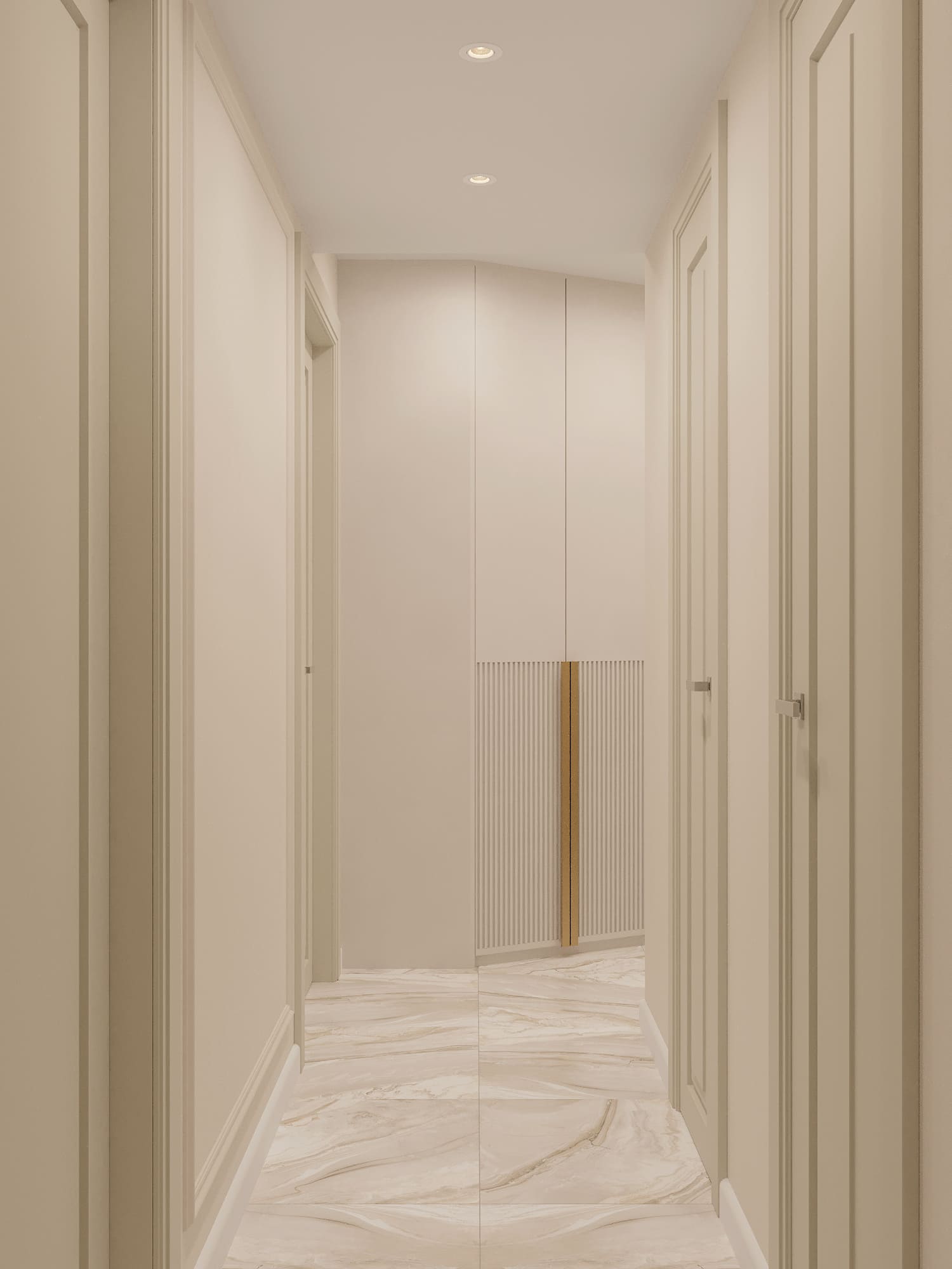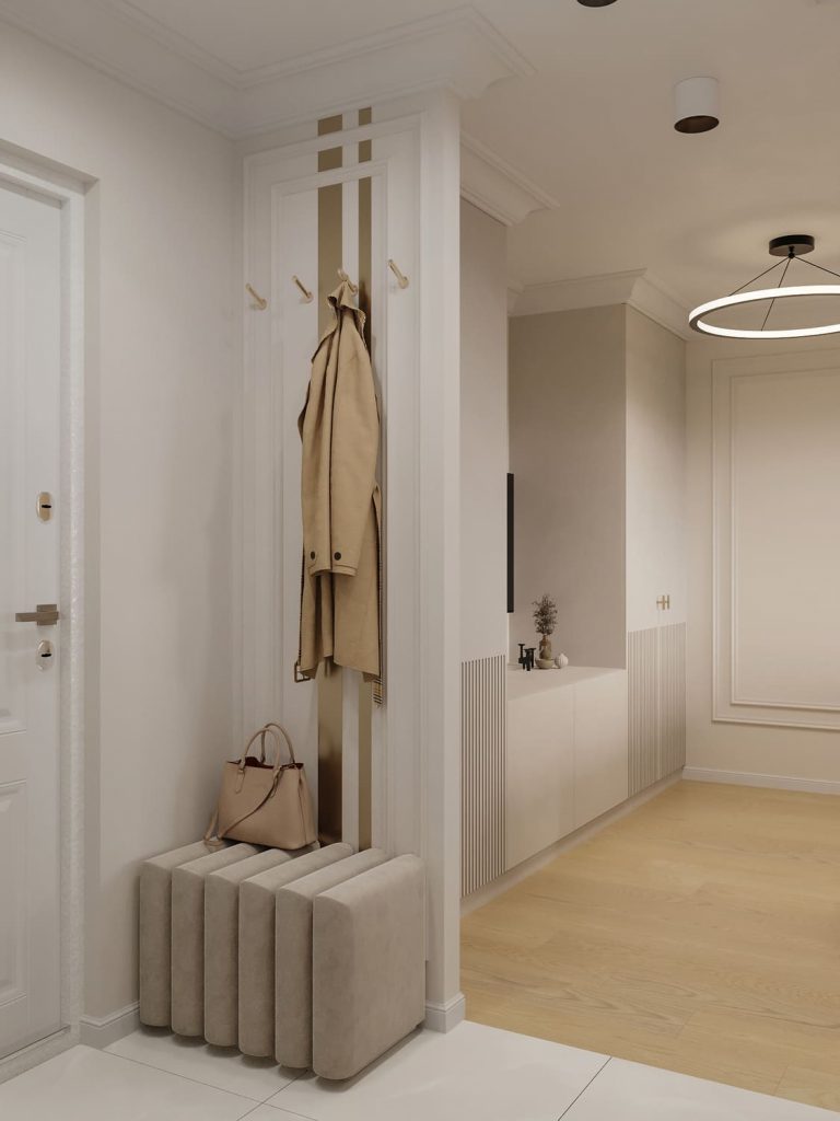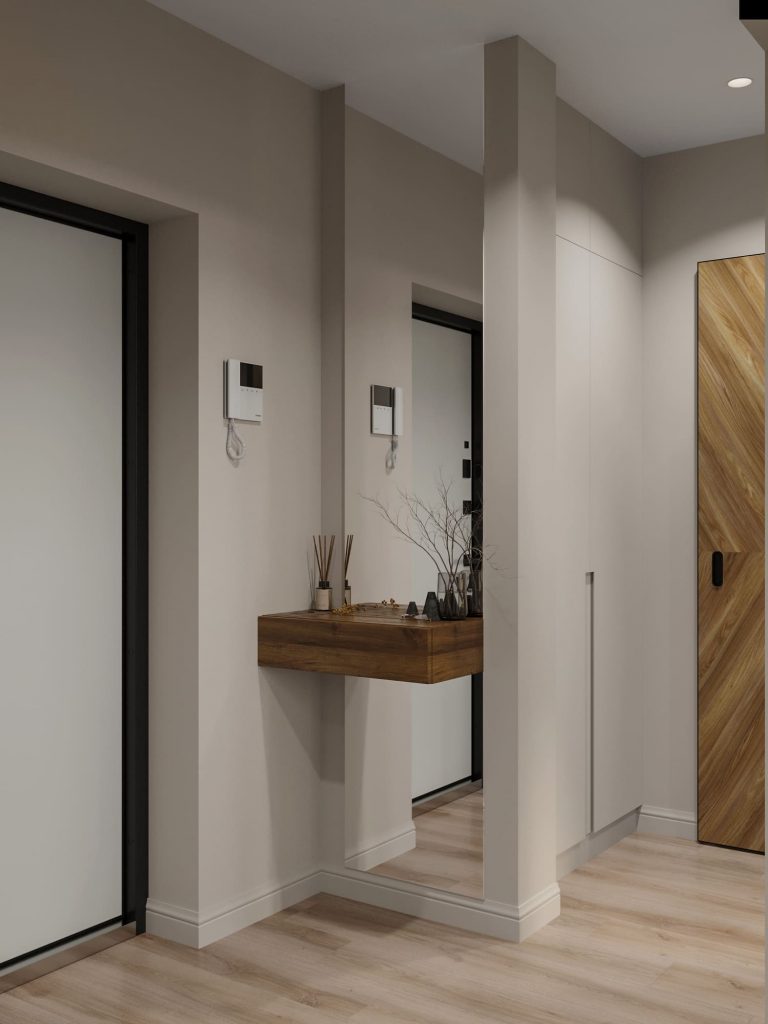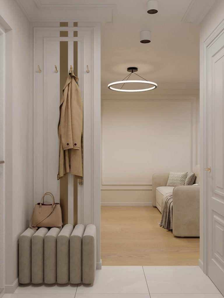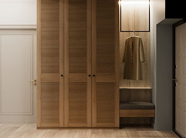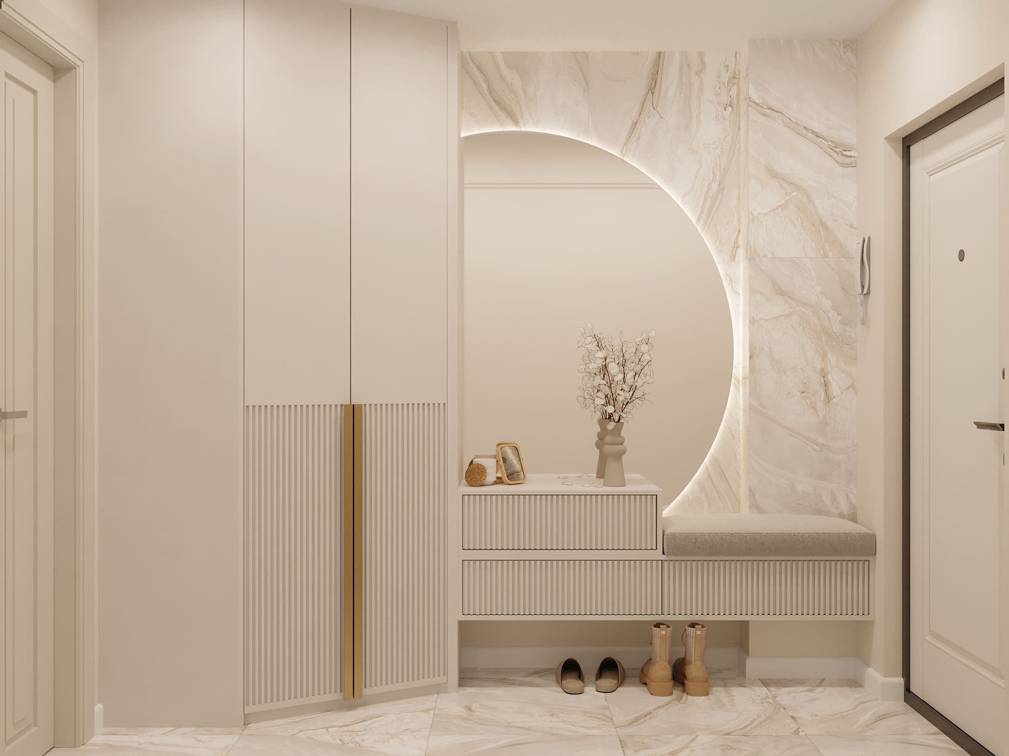Специалисты Domeo разработали продуманные дизайны для маленькой прихожей, создав гармоничный интерьер с максимальной функциональностью. Каждый элемент мебели в этом проекте был спроектирован специально для компактного пространства.