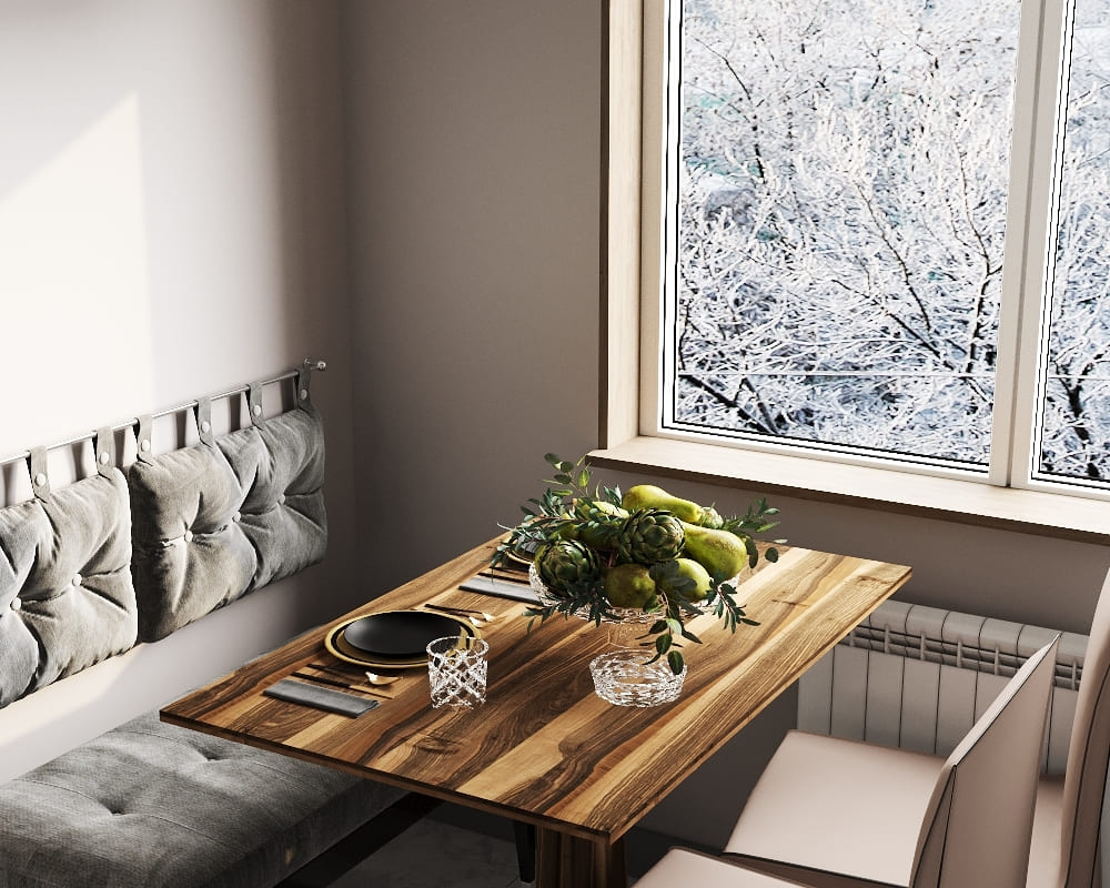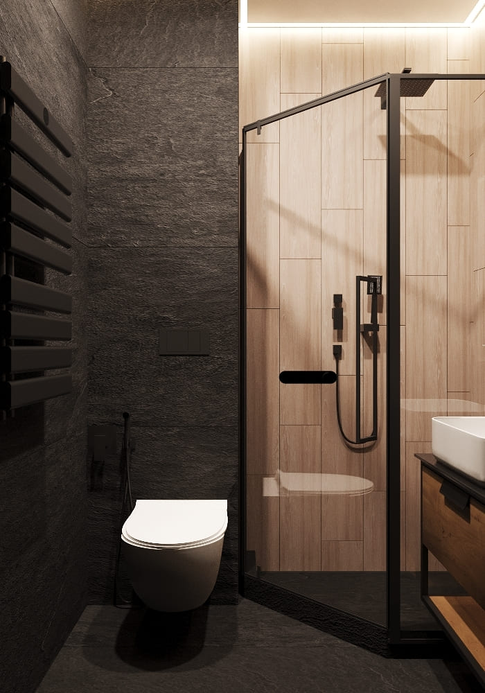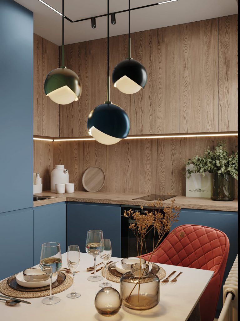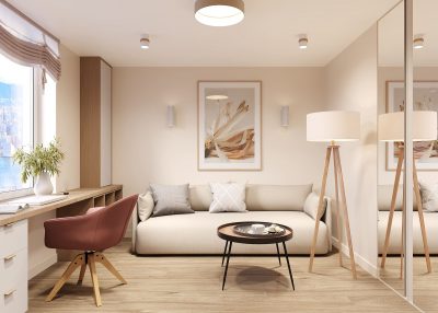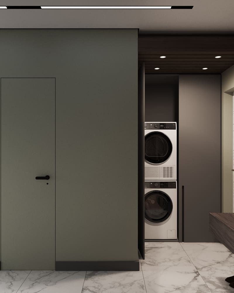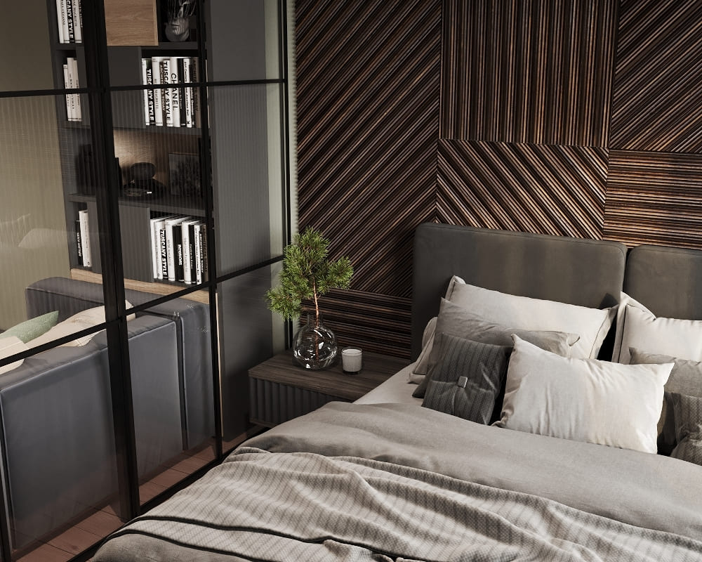 Этот дизайн-проект доказывает, что даже стандартная однушка в хрущевке может стать стильным и благородным пространством. Интерьер для взрослого мужчины решён в сдержанной палитре тёмного дерева, глубокого зелёного и пастельного бежевого, что создаёт атмосферу солидности и уюта.