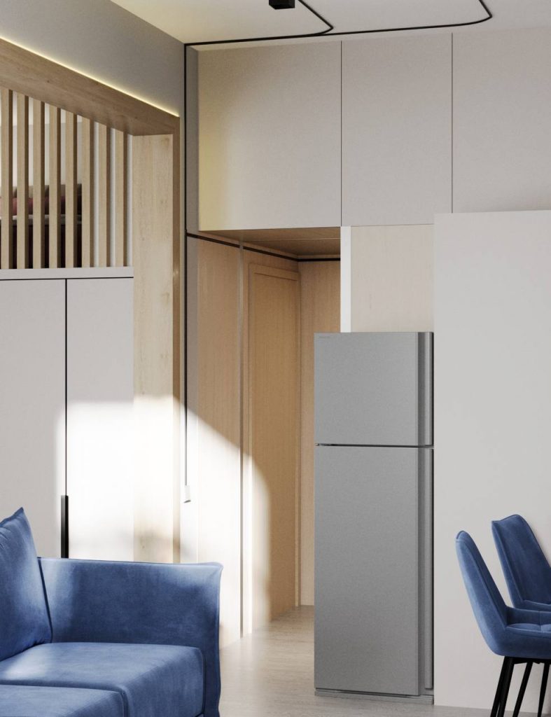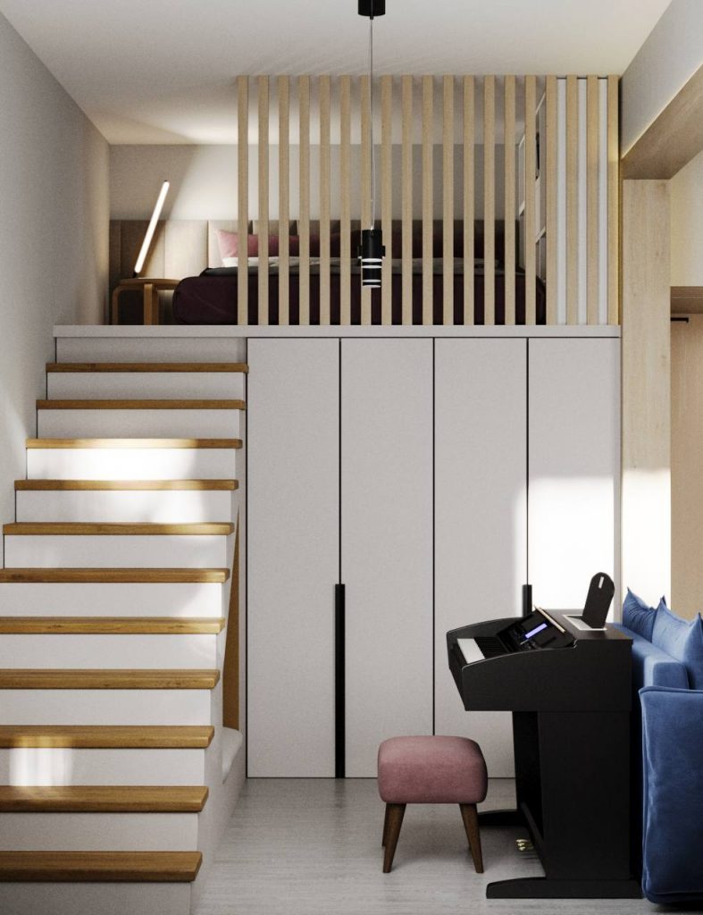 Этот проект демонстрирует, как классические идеи ремонта однокомнатной квартиры 30 кв могут быть творчески переосмыслены в двухуровненом пространстве. Дизайн для молодой пары сочетает современную эстетику с драматичными тёмными акцентами, создавая атмосферу стиля и уюта.