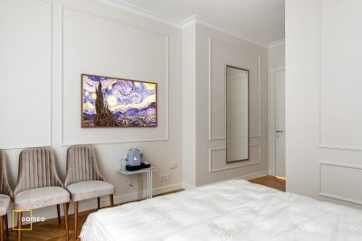 Прежде чем думать о красивых картинках, нужно чётко представлять будущую обстановку. Определить место для дивана, убедиться, что в спальню войдёт кровать нужного размера, и заранее понять, на какой высоте повесить телевизор, чтобы смотреть было комфортно.