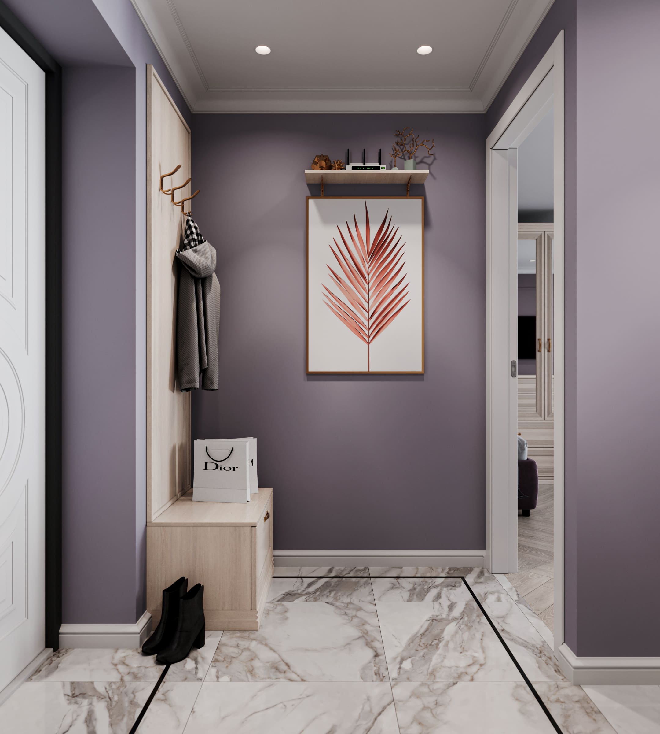 Эта квартира завораживает глубиной фиолетовой палитры — от нежных лавандовых полутонов до насыщенных сливовых и баклажановых акцентов. Такой смелый цветовой выбор делает интерьер эксклюзивным, придавая пространству ноты роскоши и творческой смелости.