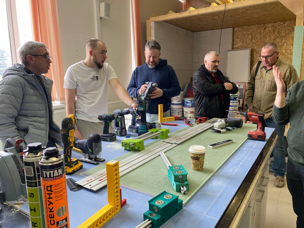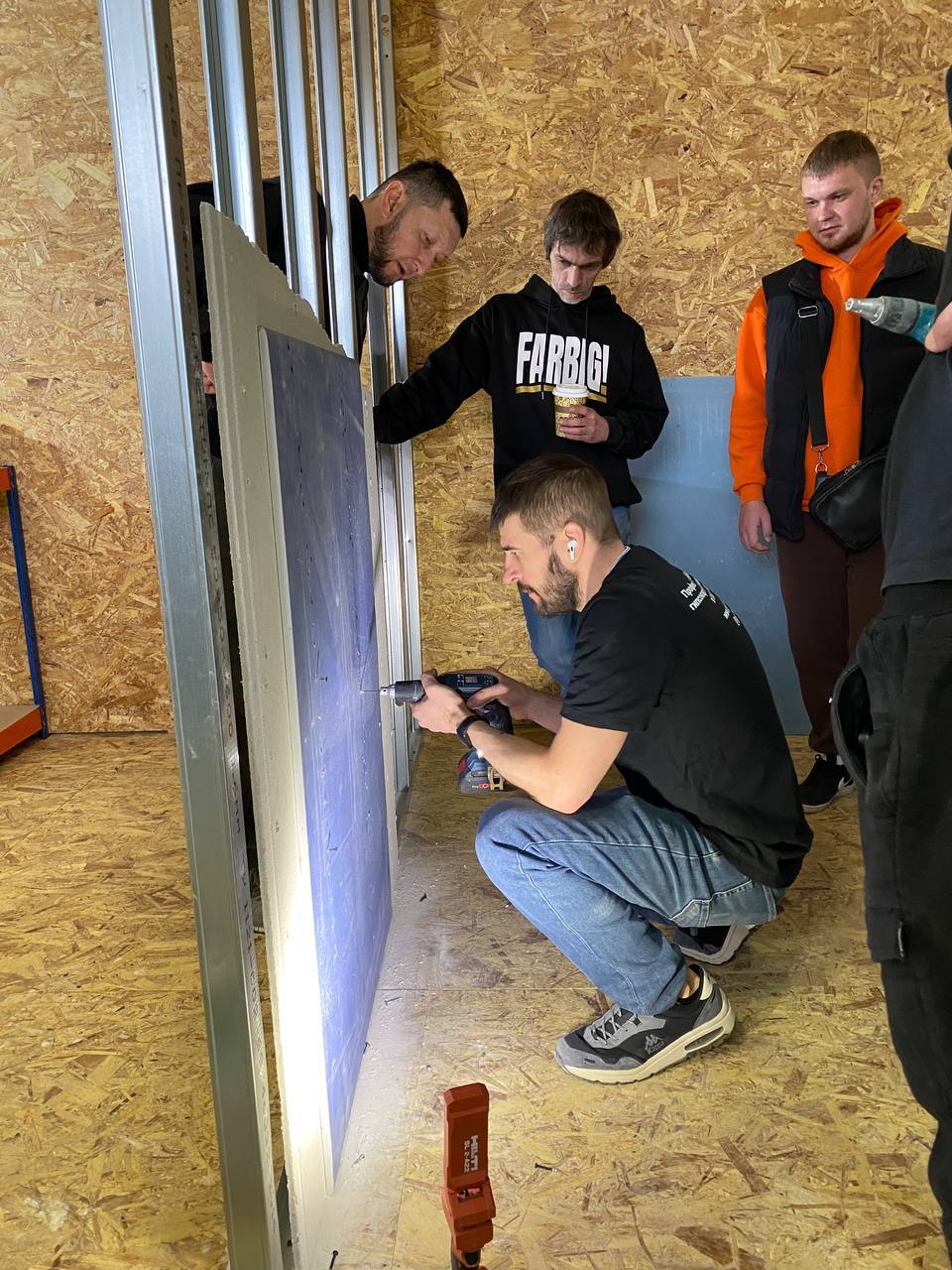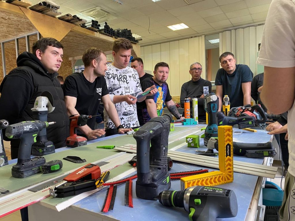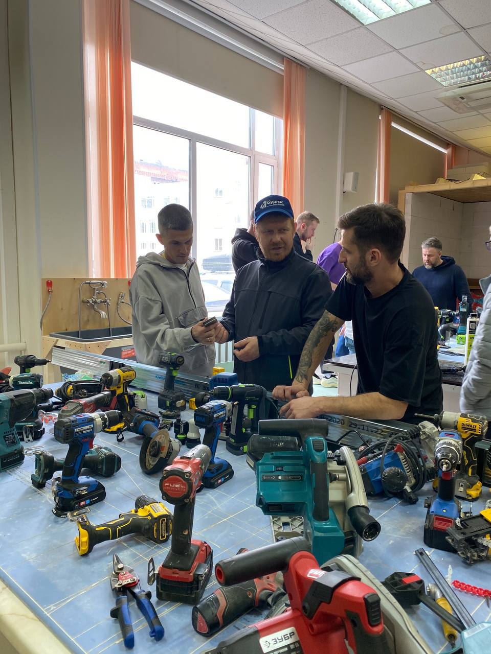 На слете были протестированы различные материалы наших партнеров - высокопрочный гипсокартон Gyproc Стронг и Gyproc Мультикомфорт, Knauf Сапфир и ГВЛ. Мы используем только проверенные материалы и постоянно проводим их тестирование для обеспечения безопасноcти и комфорта наших клиентов. В работе использовались шуруповерты различных брендов, а также множество саморезов, погружные пилы и фрезеры, чтобы выявить лучших из них.