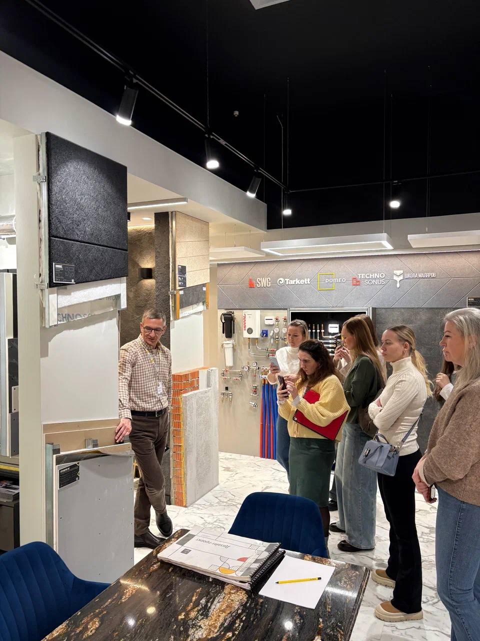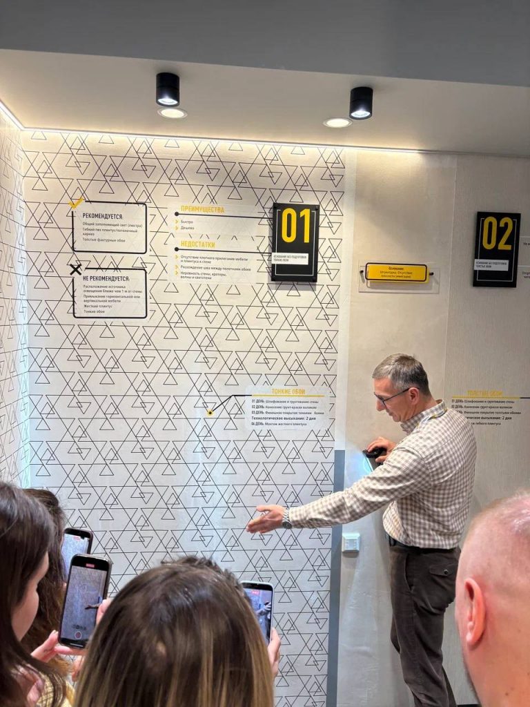 Студенты смогли наглядно увидеть материалы, текстуры и инженерные решения, сравнить варианты и почувствовать, как разные элементы влияют на облик и качество интерьера.