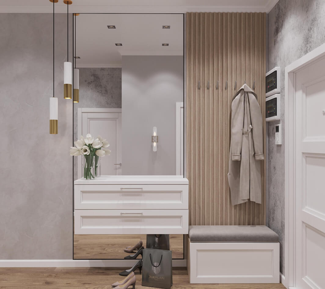 Отправной точкой в создании дизайн-проекта для семейной пары со взрослой дочерью стали интерьеры домов парижских бульваров барона Жоржа Османа, головокружительные перспективы римских улочек с выходами на аркадные площади и большая любовь всей семьи заказчиков к холодным оттенкам. В обстановке квартиры органично сочетается респектабельная классика и статусный современный стиль