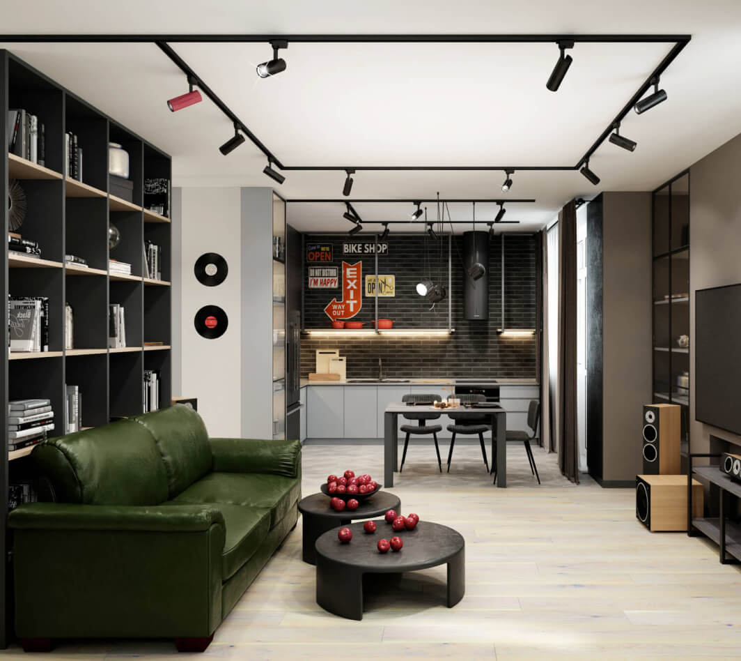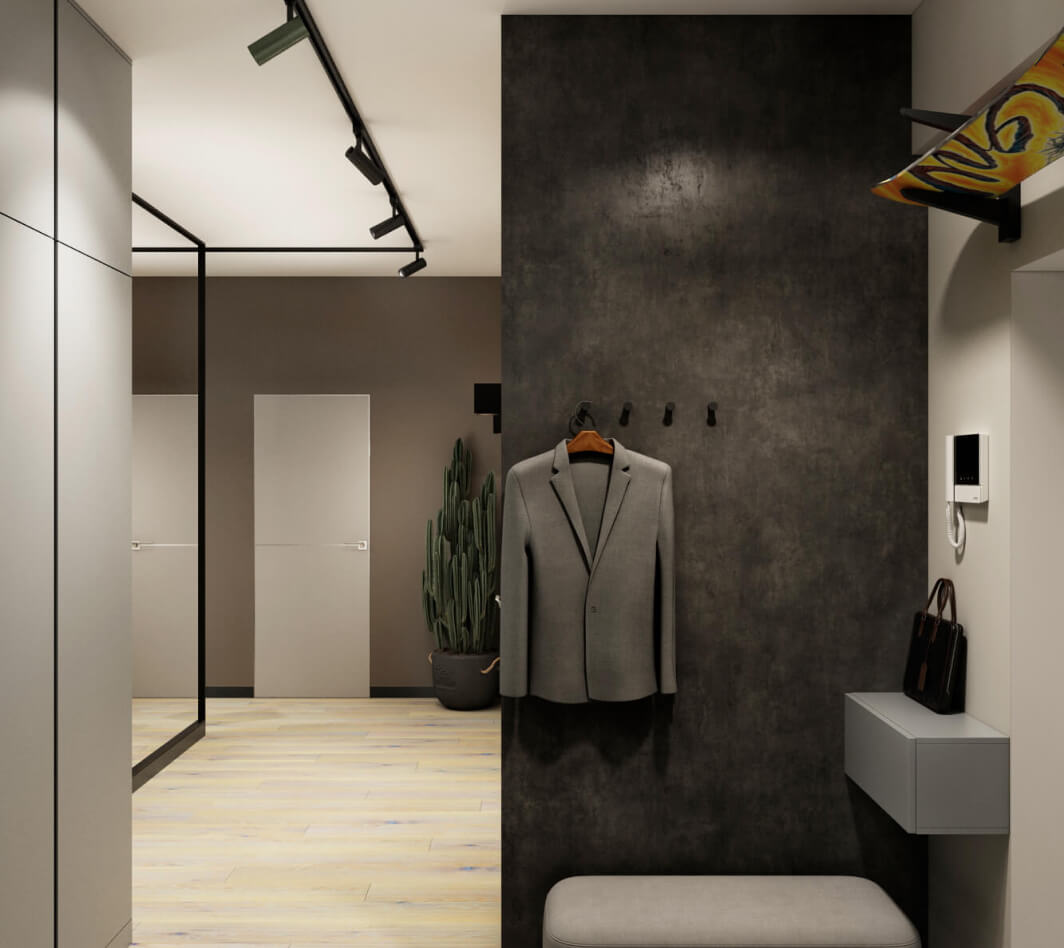 Клиенты вдохновились интерьером, который мы делали для себя, и попросили создать похожий для них. Нашей задачей было создать в трёхкомнатной квартире место для разносторонних интересов хозяев, сделать дизайн сдержанным, но не скучным