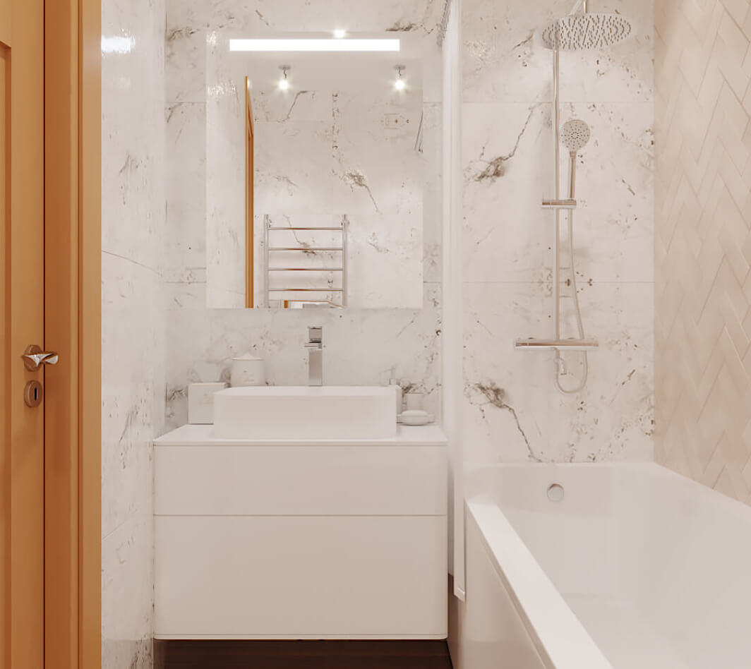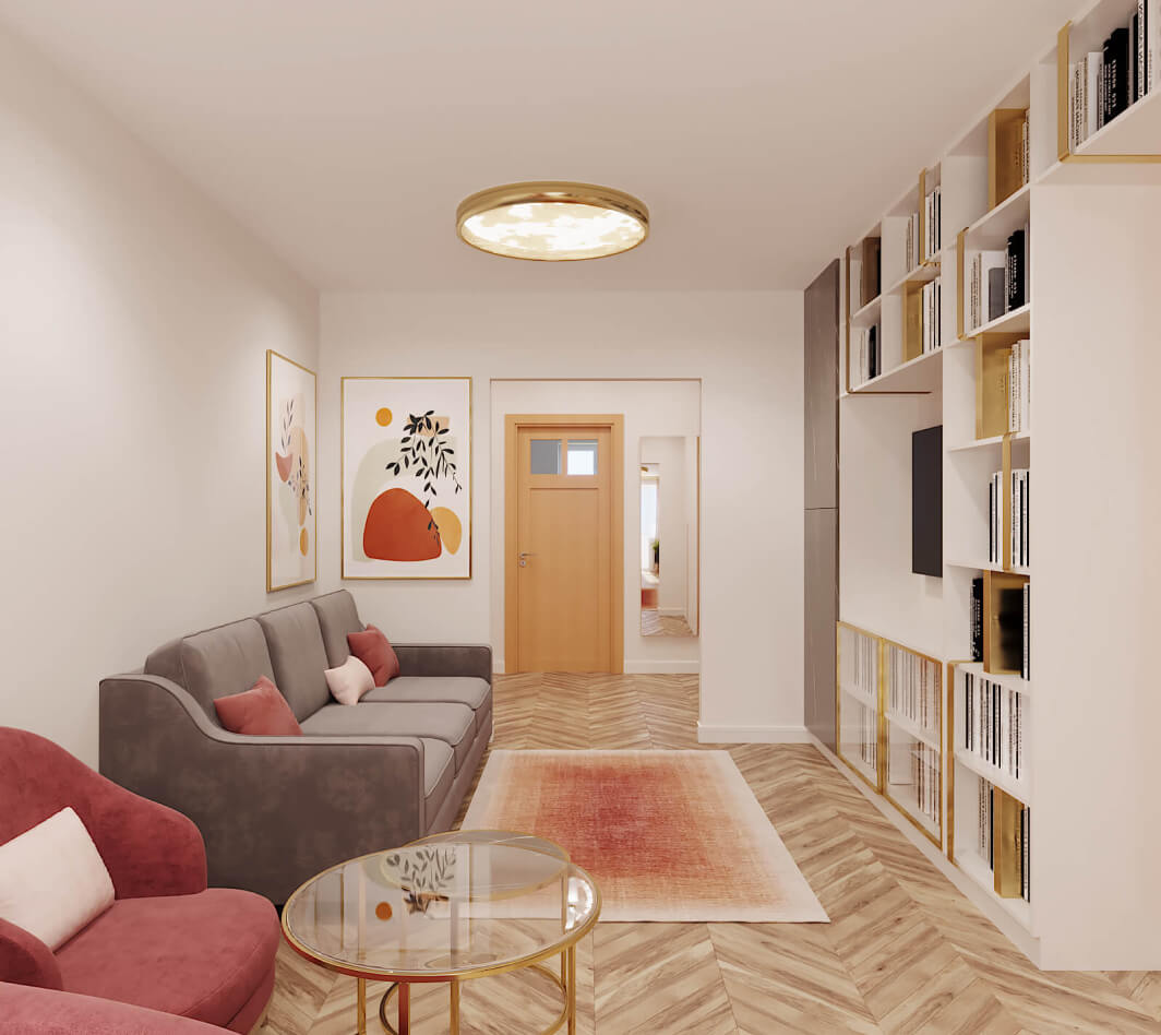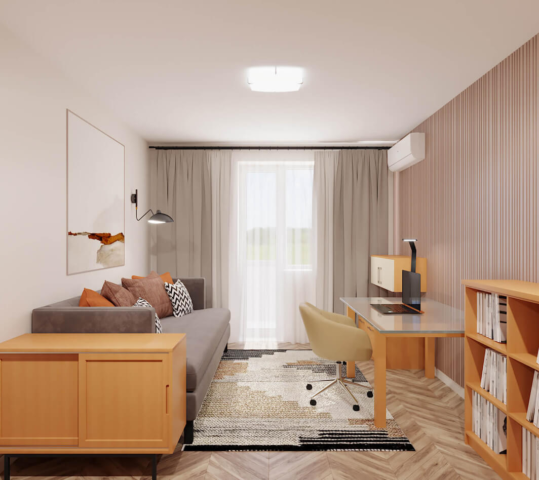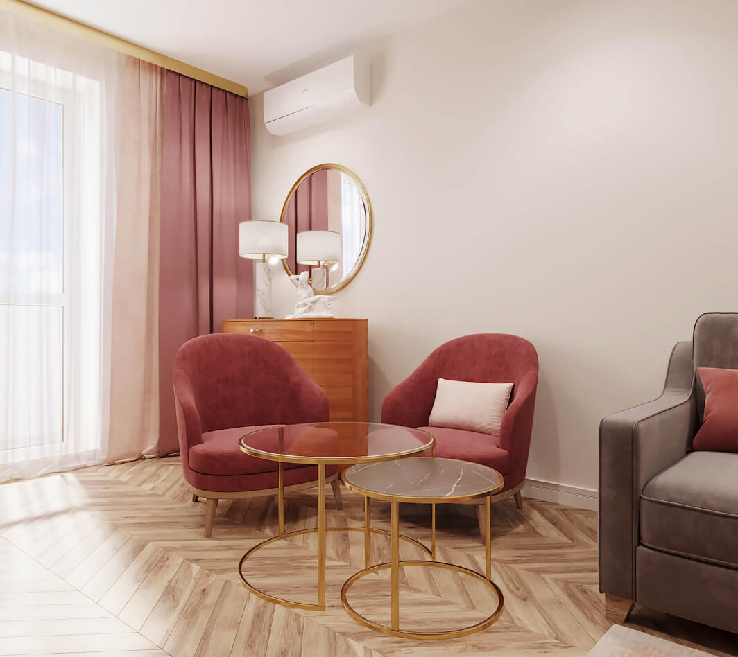 Если вы давно мечтали о красивом и уютном жилье, то эта работа вам будет особенно интересна. Мягкие и нежные тёплые оттенки успокаивают и создают легкую атмосферу. Общий стиль интерьера создаёт гармоничное и уютное настроение